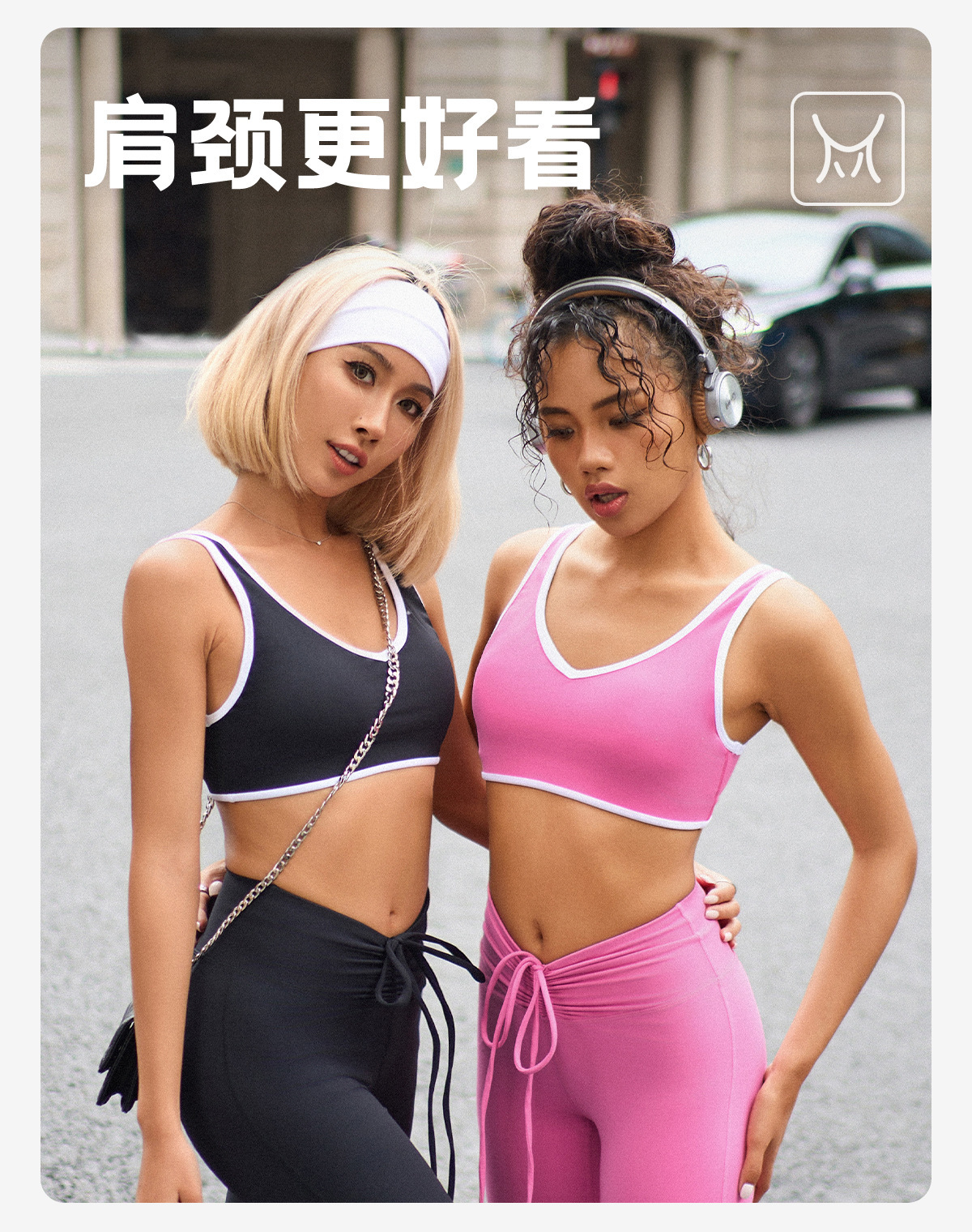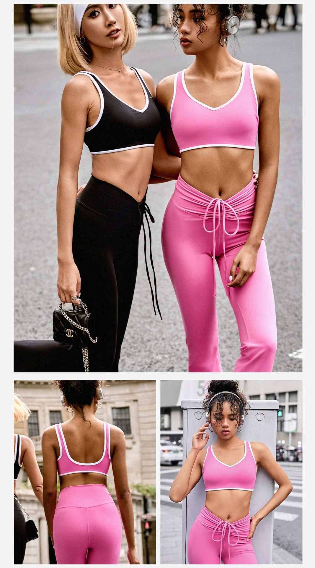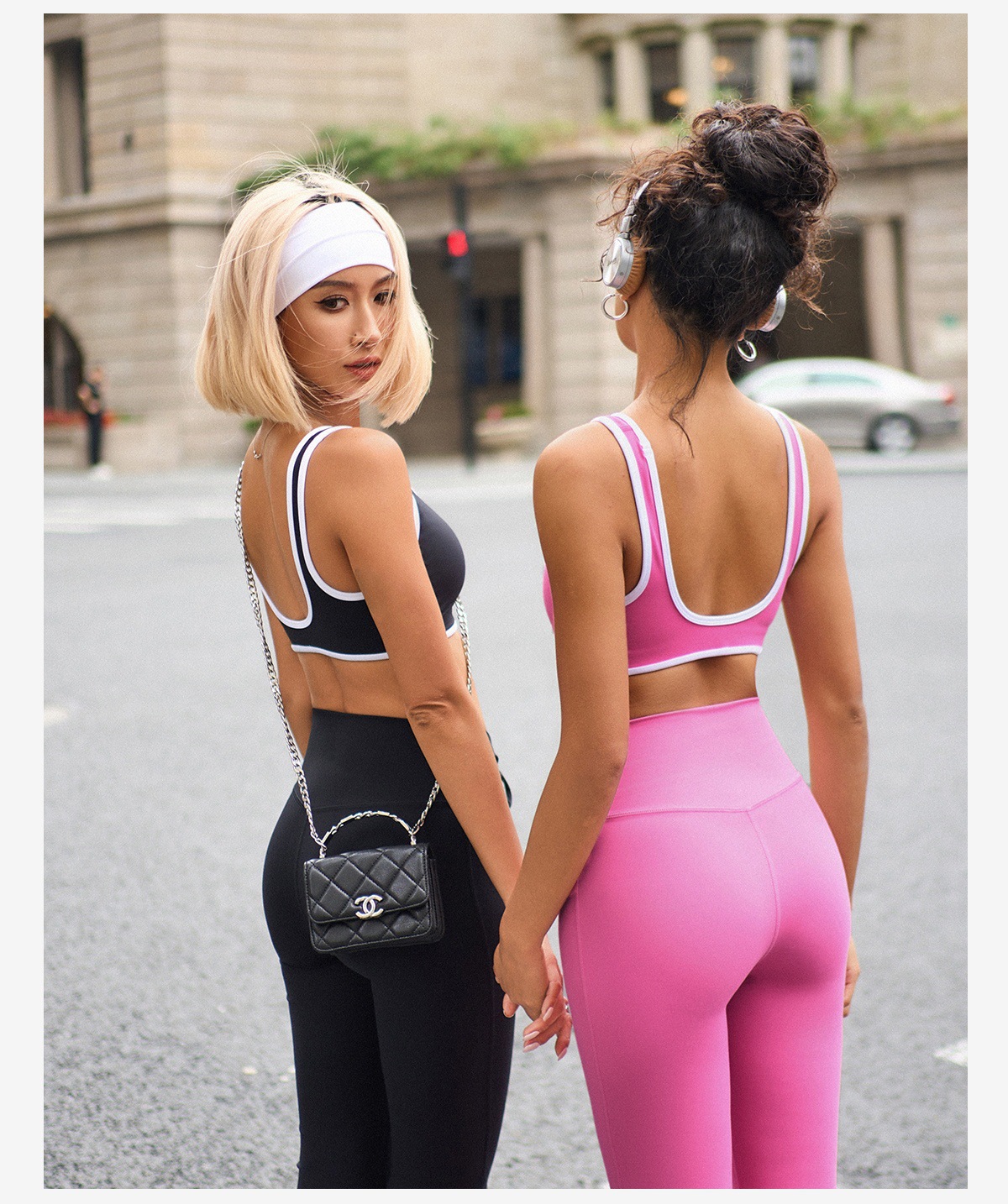 배색 스포츠 브라 강도 요가 세트 슬림핏 피트니스 백리스 탑 가슴 패드 타이트한 조끼형 통기성스토어 가기