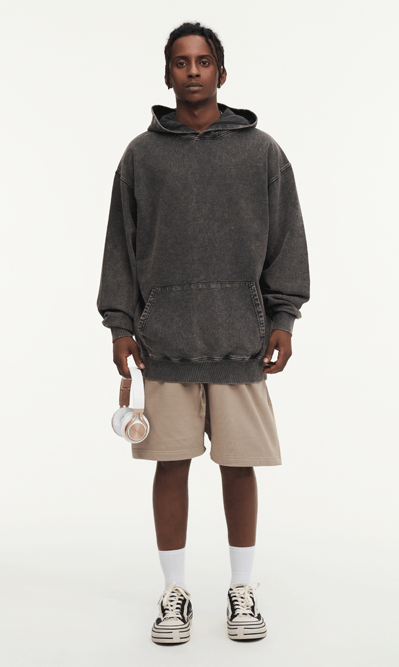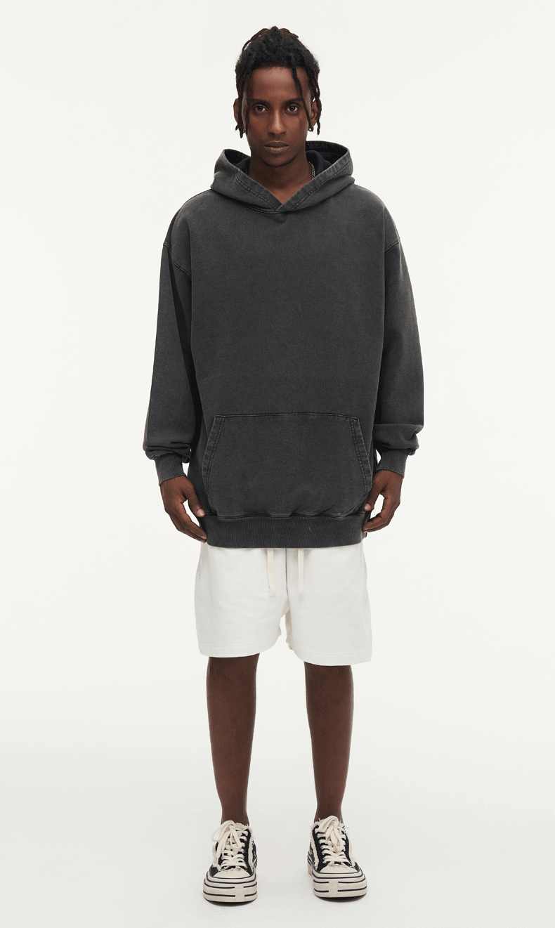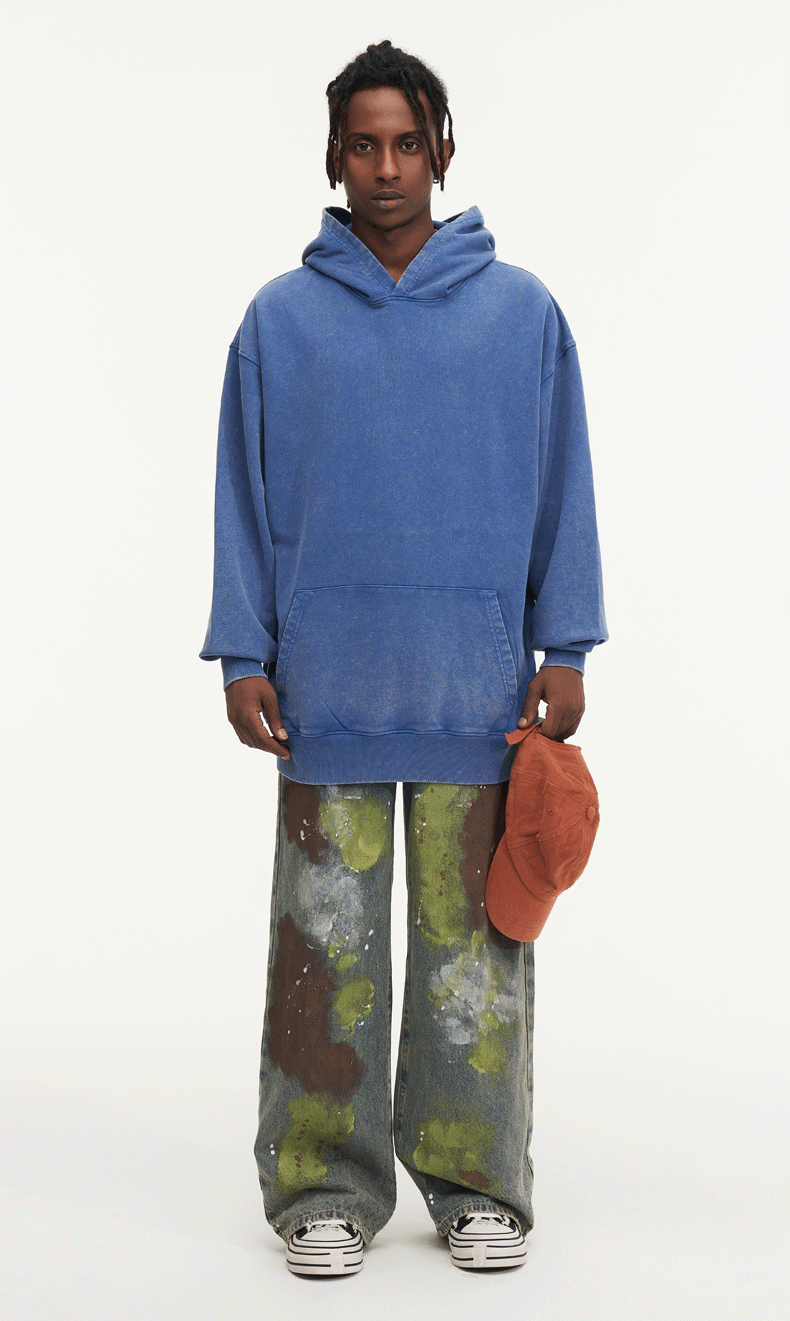 크로스보더 425G 가을 겨울 미국산 바틱 디스트레스드 후드 스웨트셔츠 남성용 헤비 코튼 테리 워싱 후드티