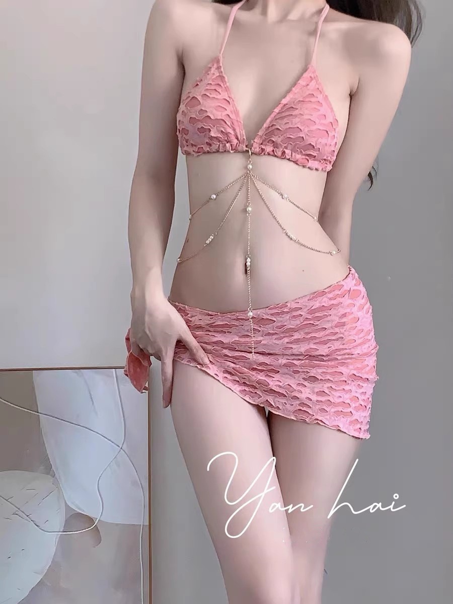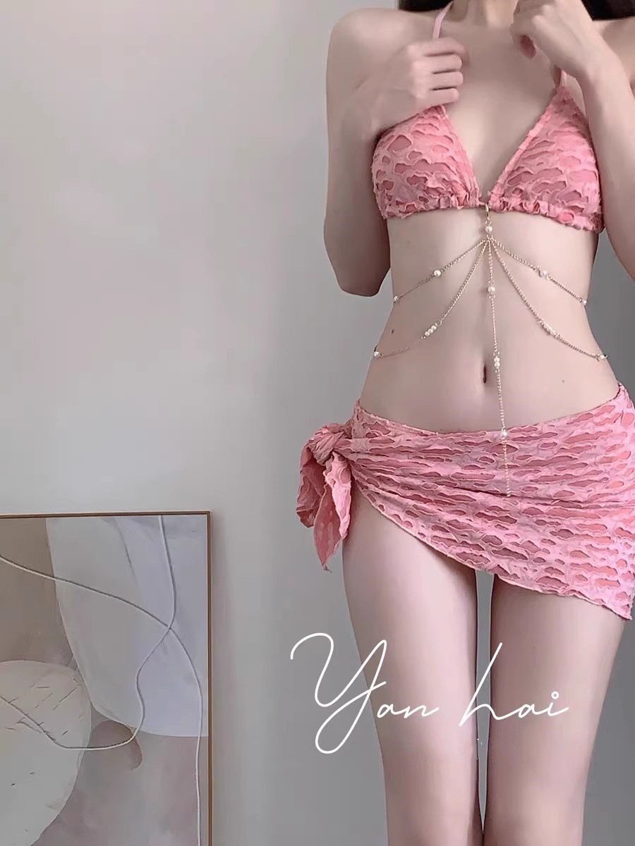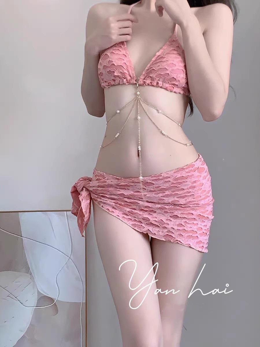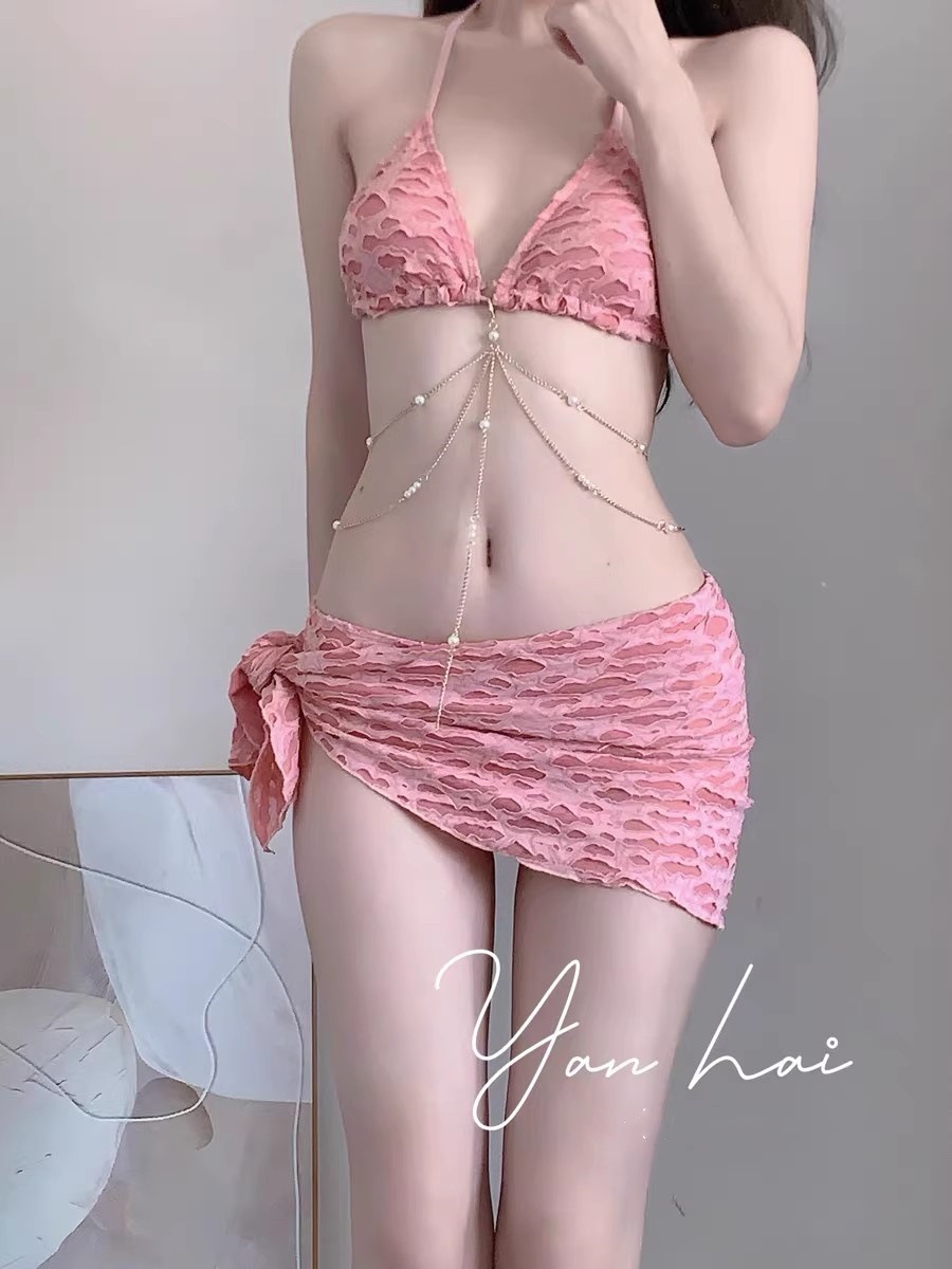 수영복 여성용 3 피스 세트 2024 새로운 섹시한 슬리밍 하이 레벨 센스 모임 휴일 비키니 해변 사진 순수한 욕망스토어 가기