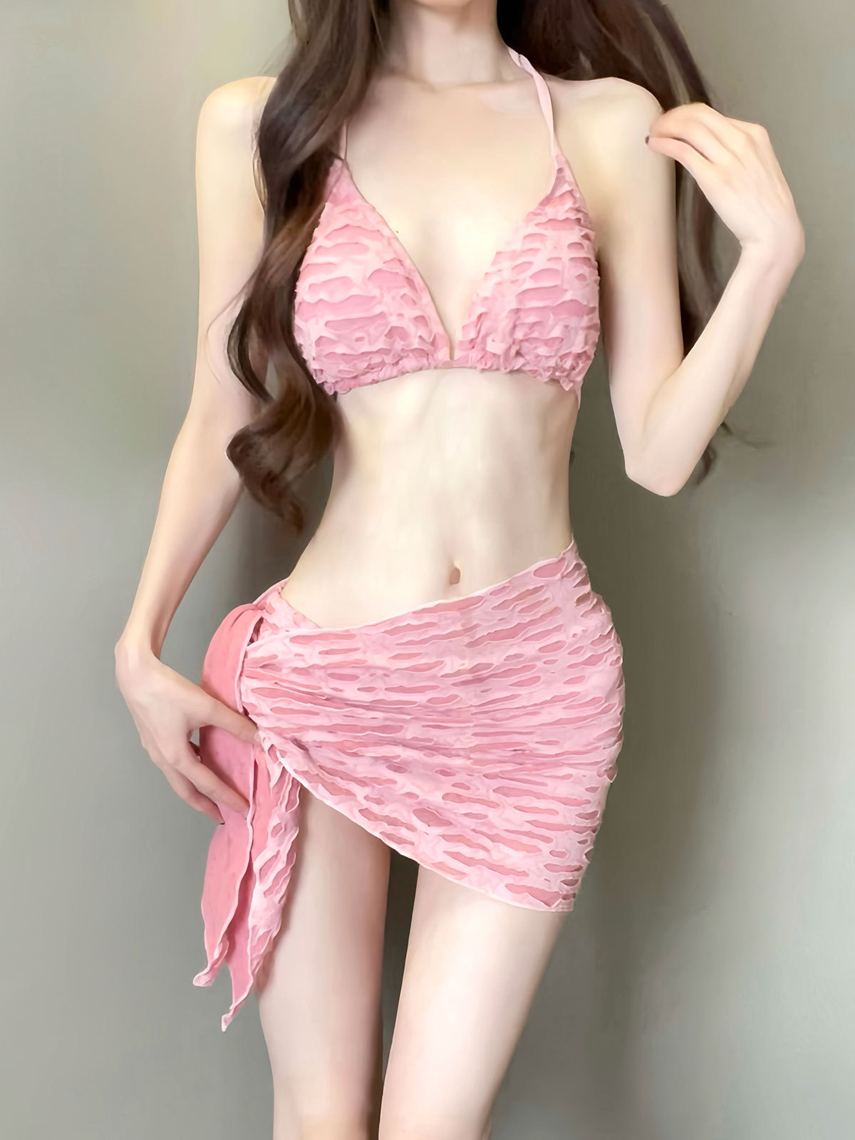 수영복 여성용 3 피스 세트 2024 새로운 섹시한 슬리밍 하이 레벨 센스 모임 휴일 비키니 해변 사진 순수한 욕망