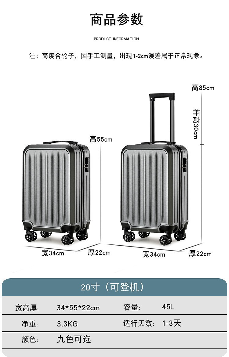 새로운 성인 수하물 단색 높은 색상 값 간단한 바람 트롤리 케이스 가벼운 대용량 가방 제조 업체 도매