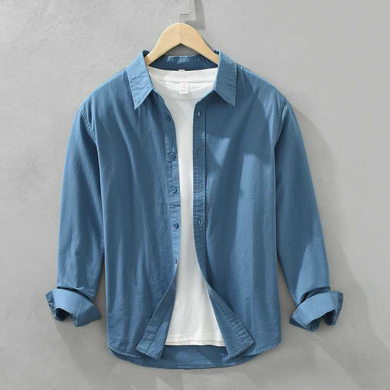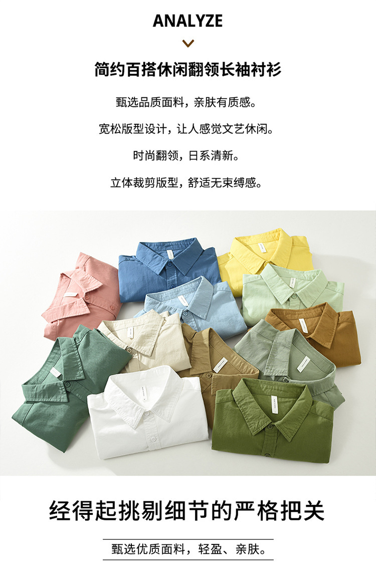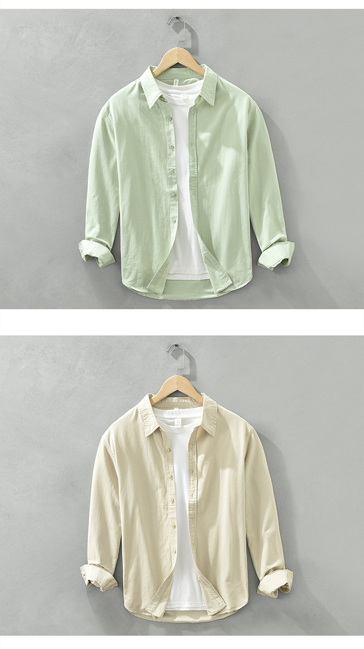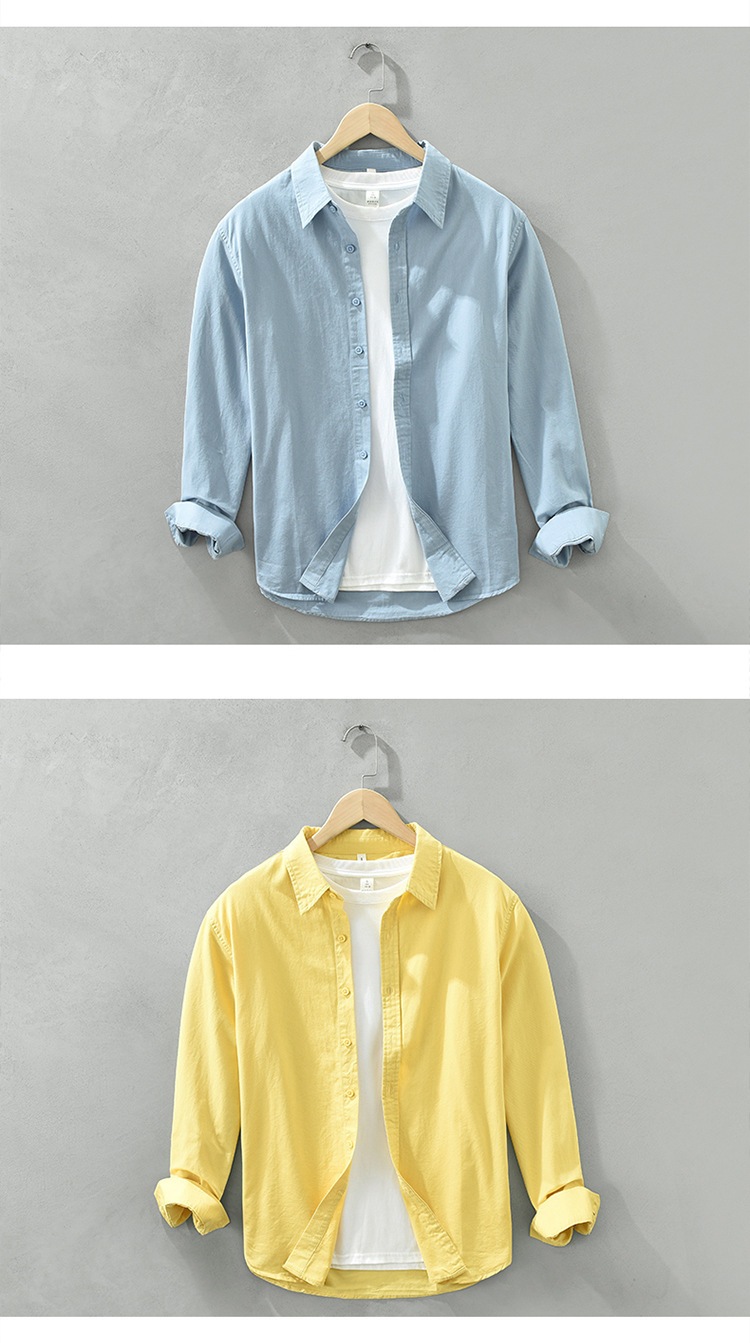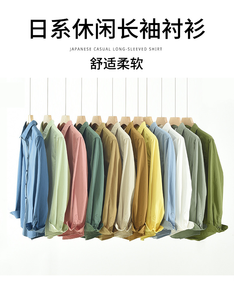 6651 일본 간단한 긴 소매 캐주얼 셔츠 남성 문학 신선한 옷깃 느슨한베이스 코트 머리카락 세대스토어 가기