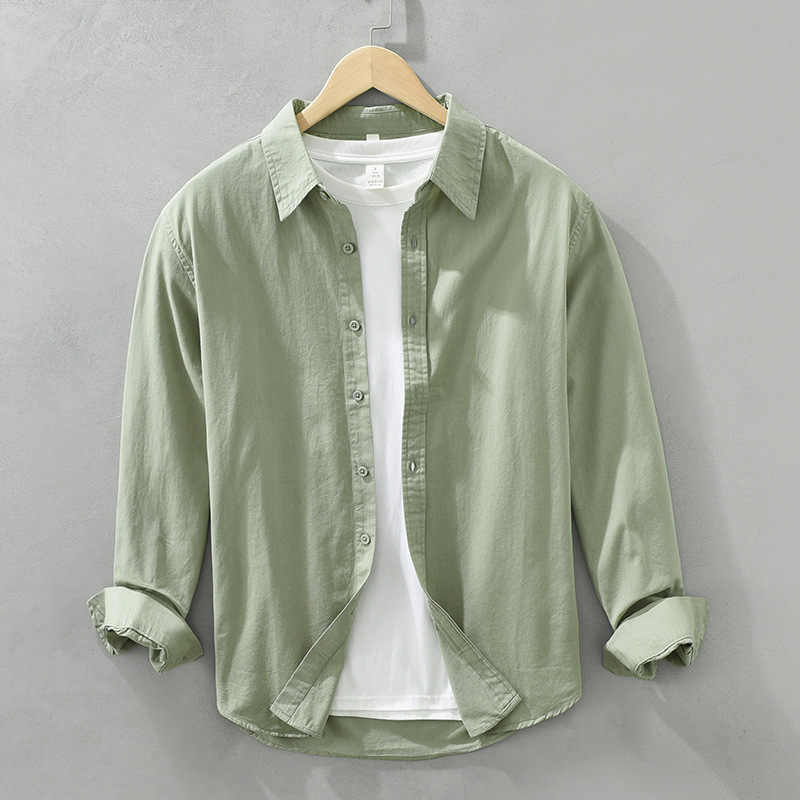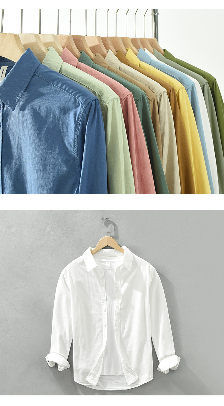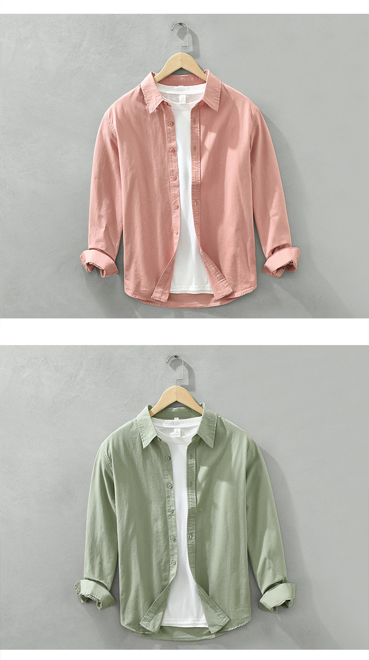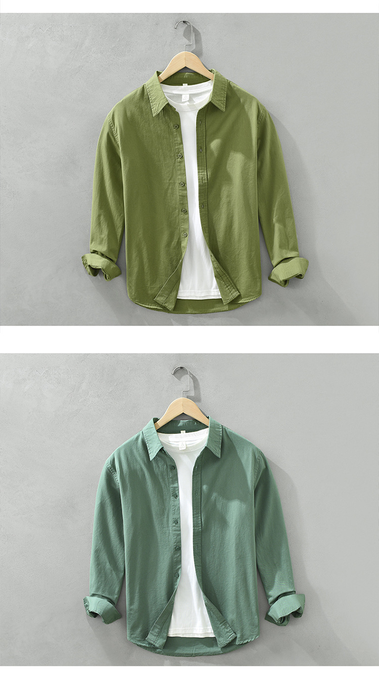 6651 일본 간단한 긴 소매 캐주얼 셔츠 남성 문학 신선한 옷깃 느슨한베이스 코트 머리카락 세대스토어 가기