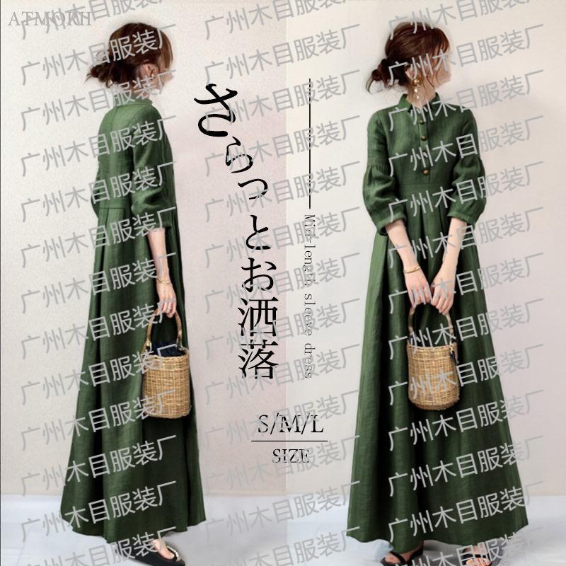 재고 국경 핫 원피스 2024 가을 새 옷깃 복고풍 하이 허리 7 소매 원피스스토어 가기