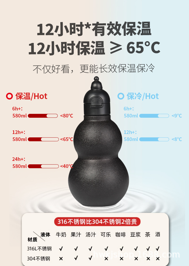 • 호리병 보온병 316 스테인리스 스틸 내피 580ml