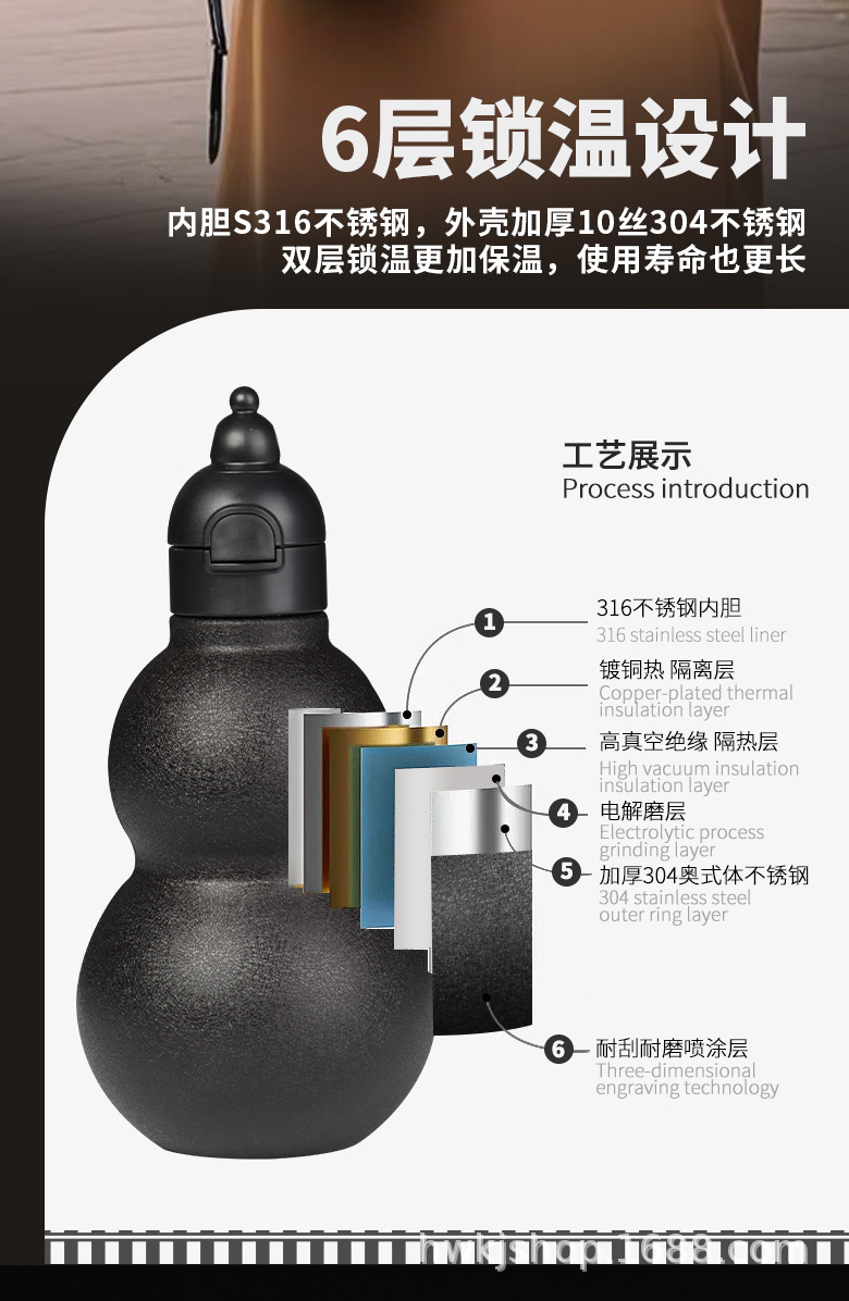 Liwanxiaofeng 조롱박 보온병 컵 스테인레스 스틸 316 대용량 스포츠 컵 소년 소녀 와인 병 주전자 선물스토어 가기