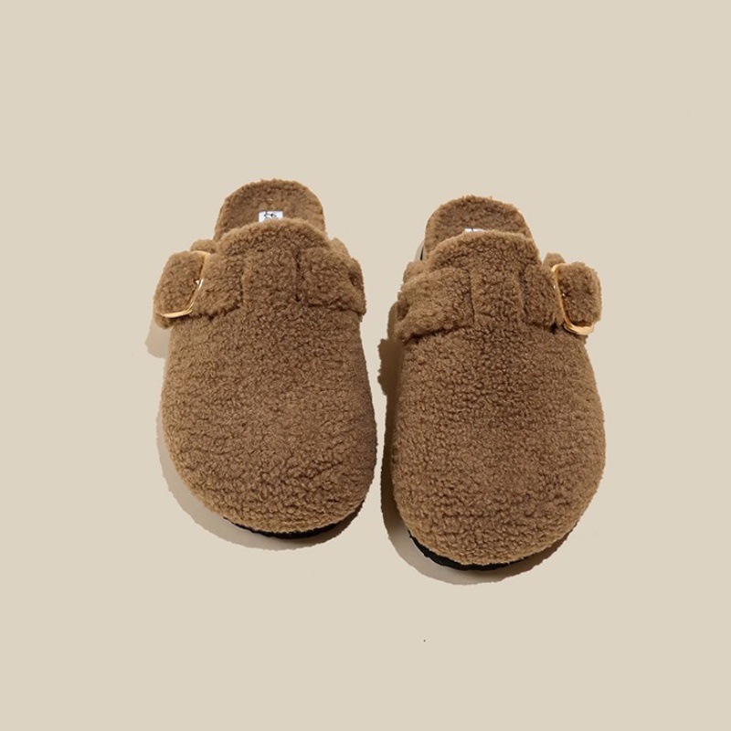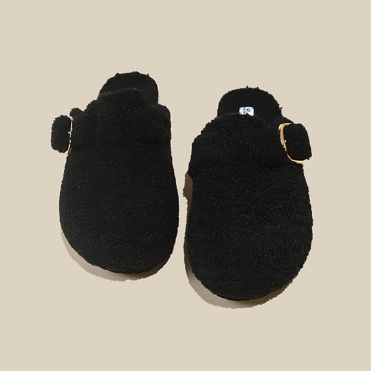 마오 마오 슬리퍼 여성 의상 2024 겨울 새로운 인터넷 인기있는 슬립 온 플랫 바닥 게으른 바오 투 하프 슬립 온 코튼 슬리퍼