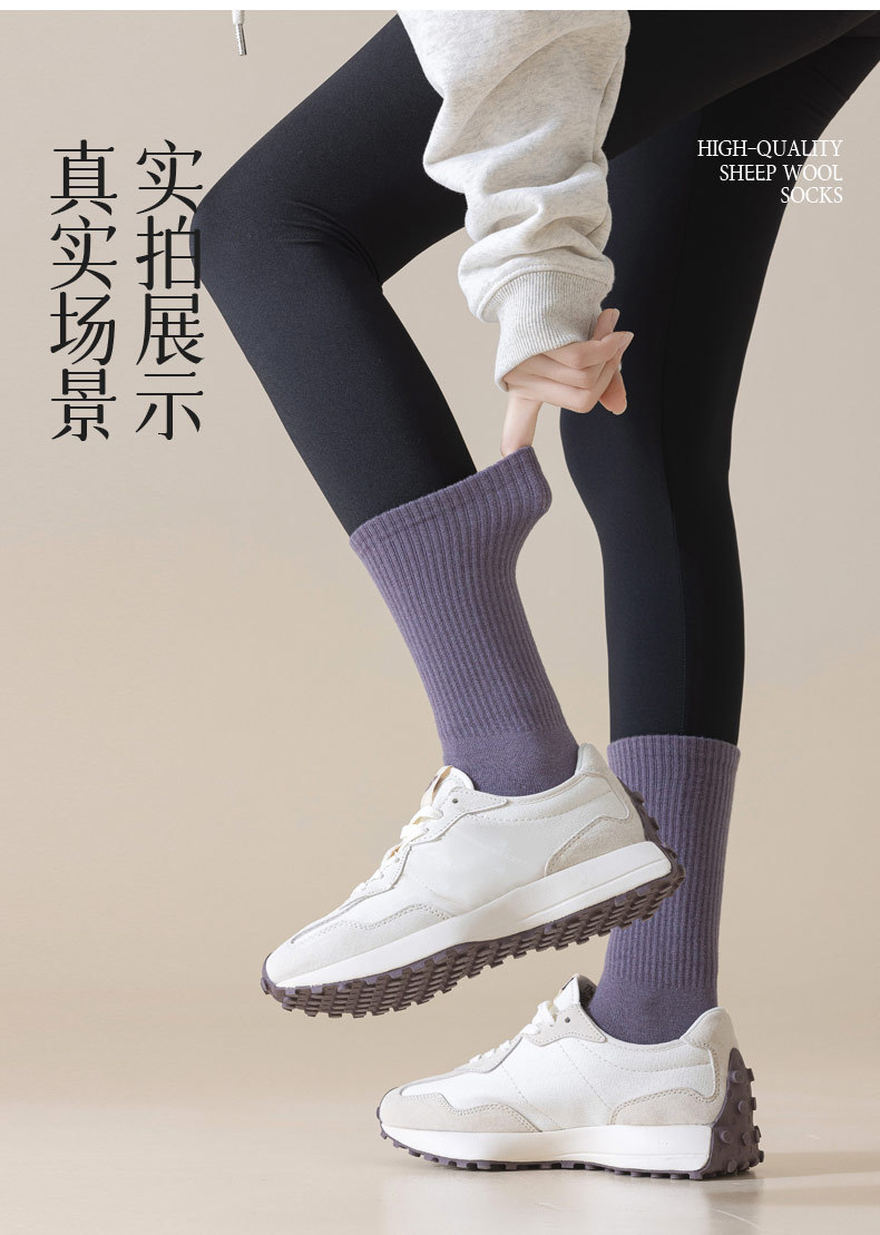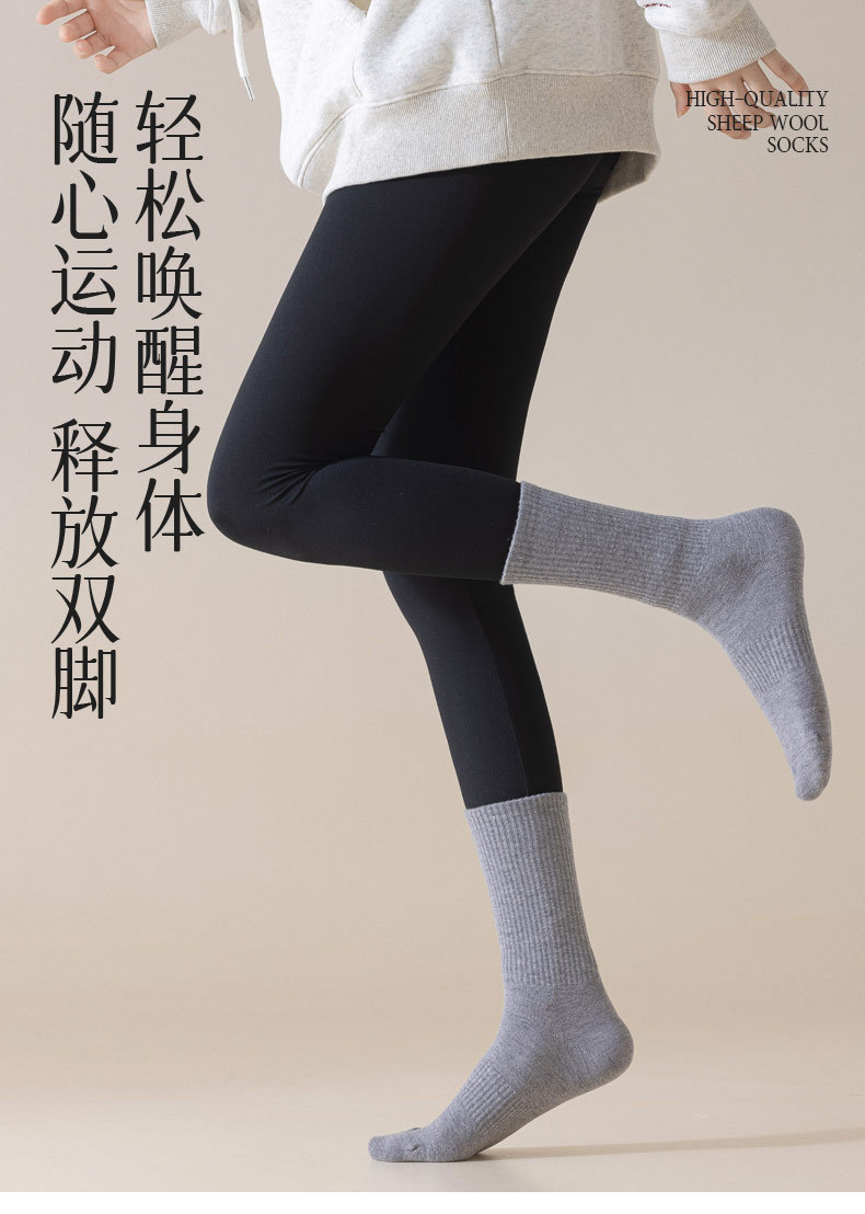 양말 여성의 가을과 겨울 24% 양모 따뜻한 난방 두꺼운 스포츠 양말 상어 바지 단색 달리기 등산