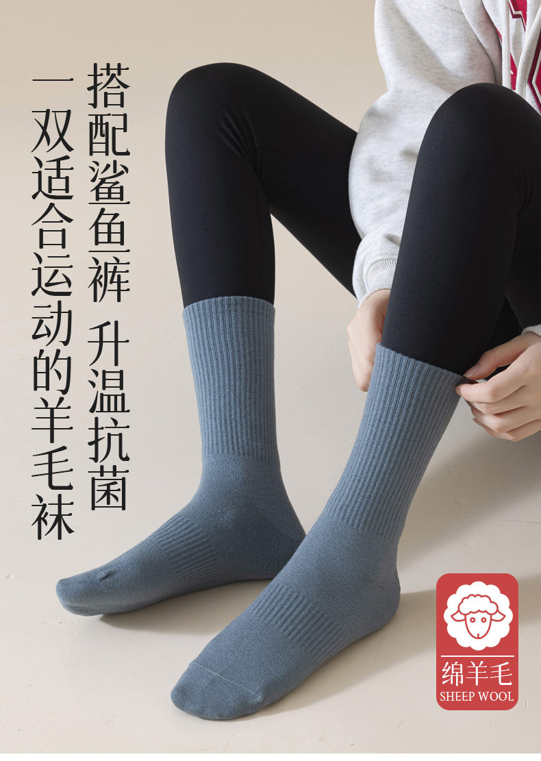 양말 여성의 가을과 겨울 24% 양모 따뜻한 난방 두꺼운 스포츠 양말 상어 바지 단색 달리기 등산스토어 가기