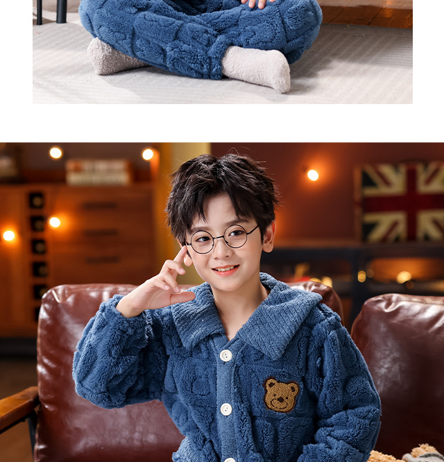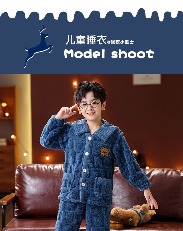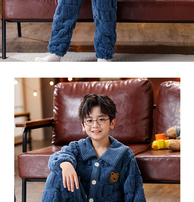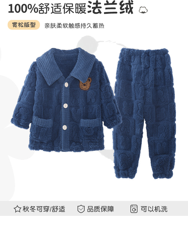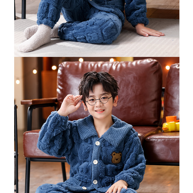 소년 소녀를위한 겨울 어린이 플란넬 잠옷 큰 아이들을위한 두꺼운 산호 양털 따뜻한 기모 아기 홈 옷 세트