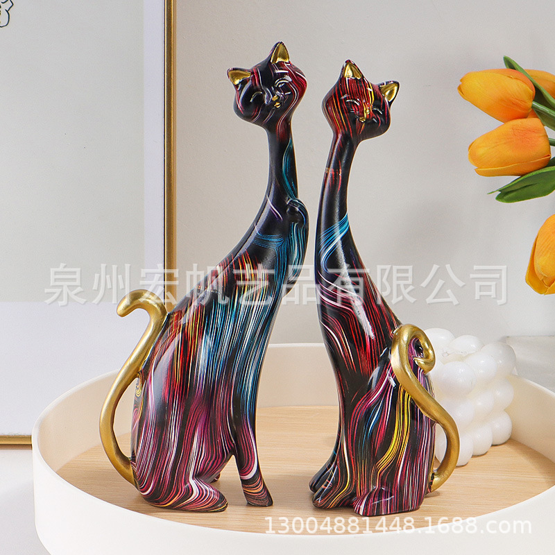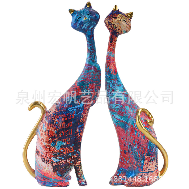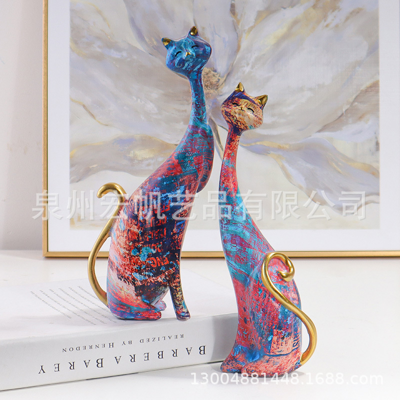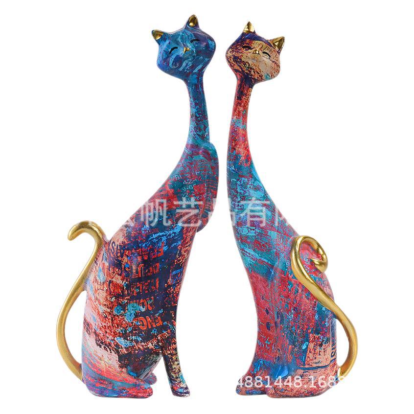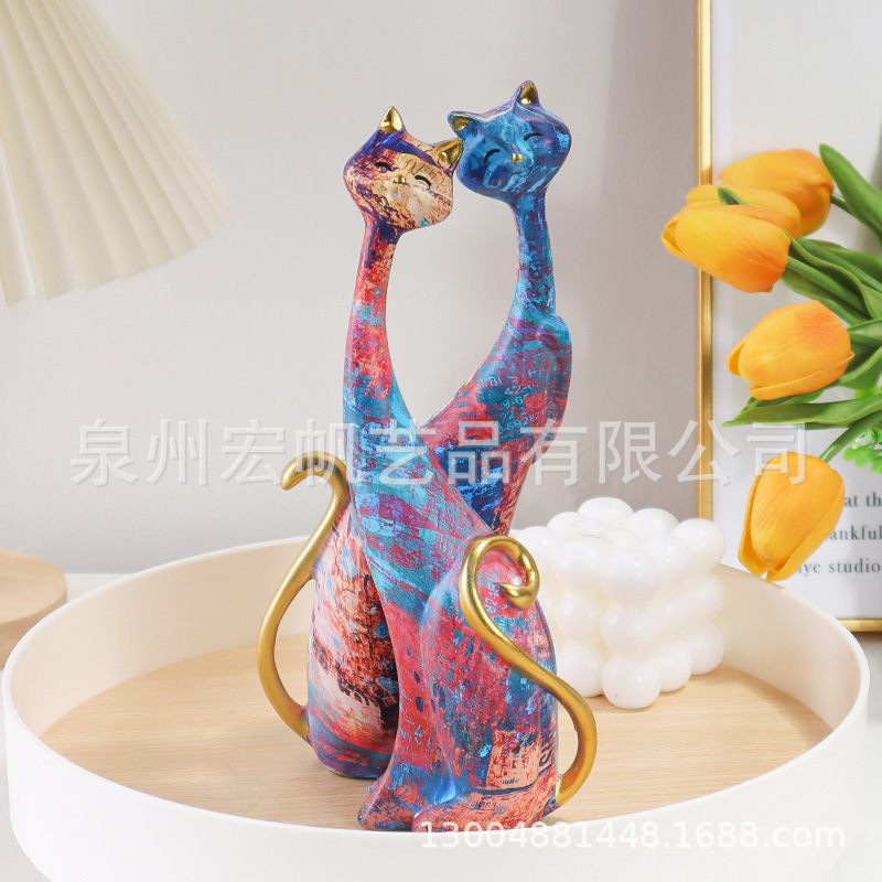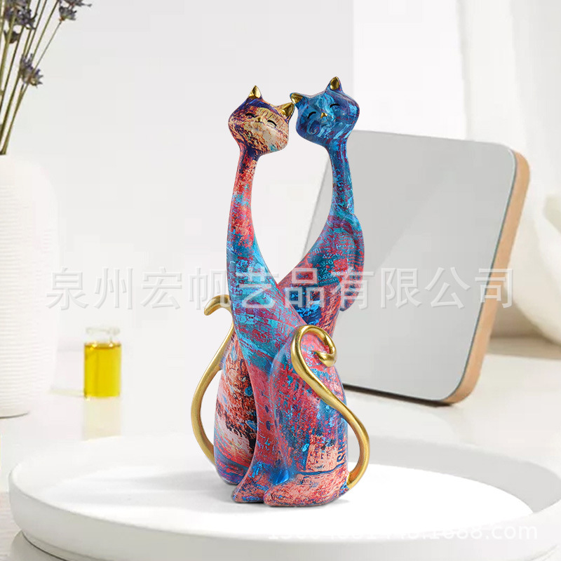 가벼운 럭셔리 물 전송 인쇄 고양이 장식품 창조적 인 예술적 부드러운 커플 고양이 현대 귀여운 결혼 선물스토어 가기