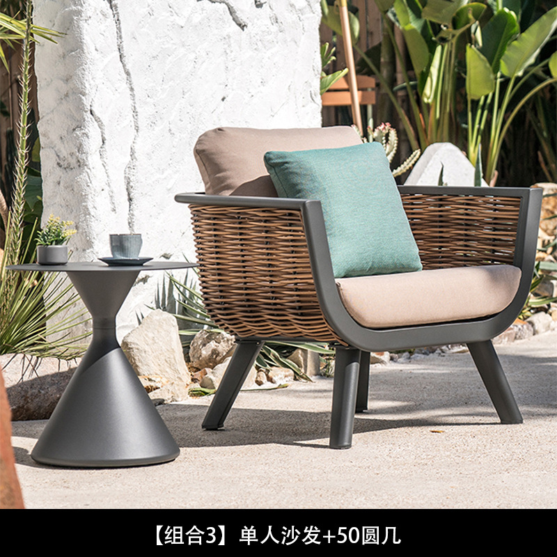 야외 등나무 소파 조합 코트야드 빌라 홈스테이 발코니 등나무 의자 야외 방수 선 스크린 야외 정원 테라스스토어 가기