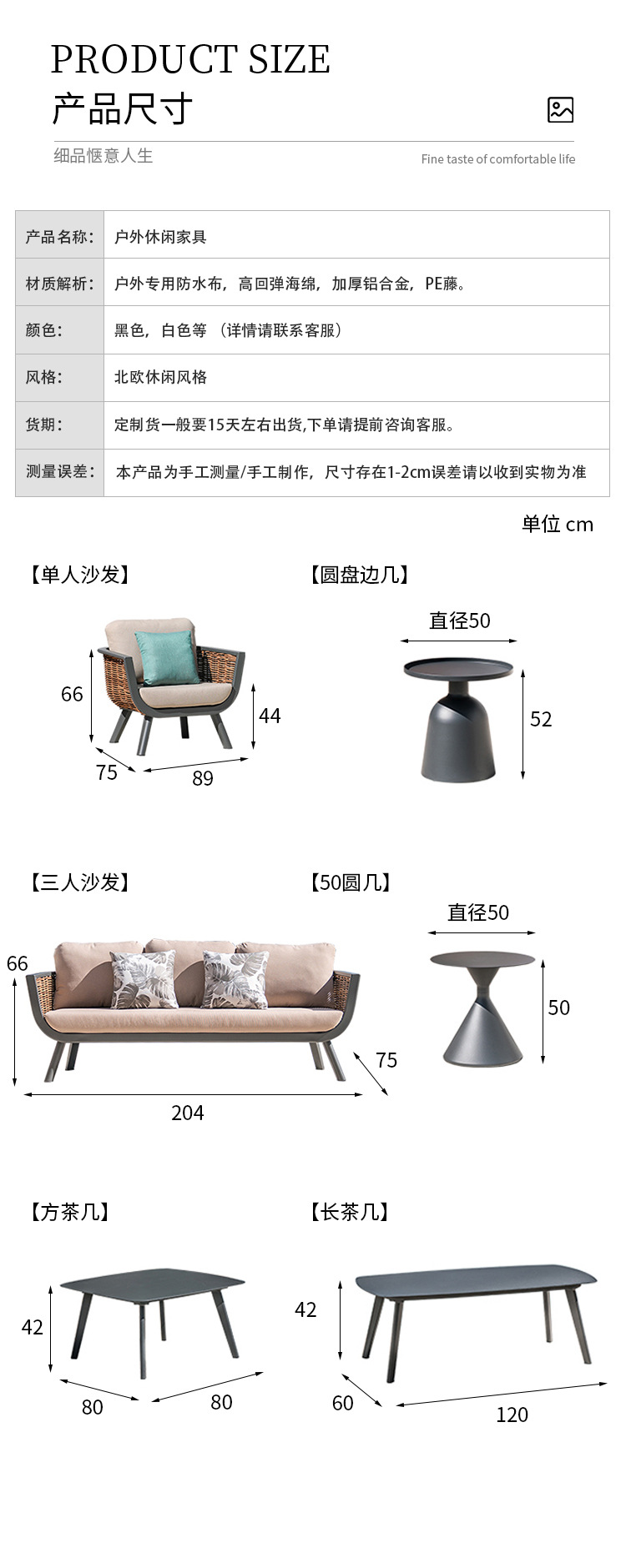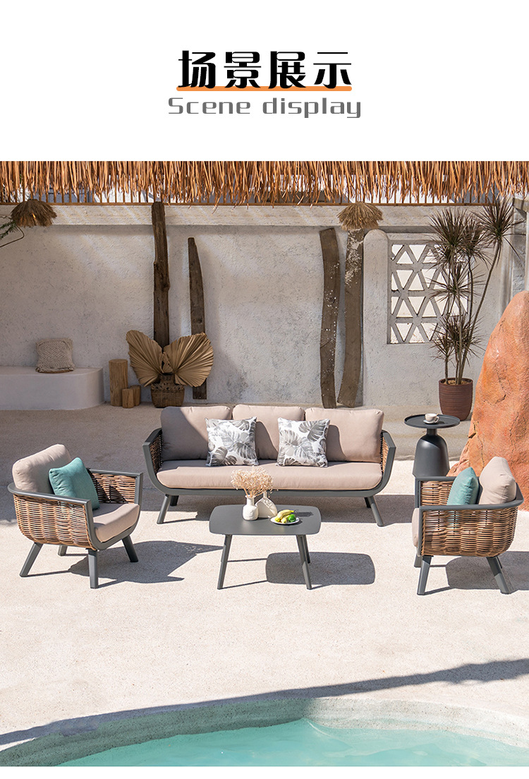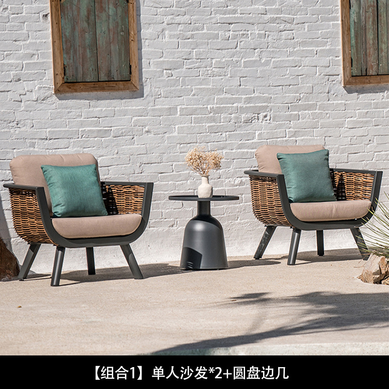 야외 등나무 소파 조합 코트야드 빌라 홈스테이 발코니 등나무 의자 야외 방수 선 스크린 야외 정원 테라스