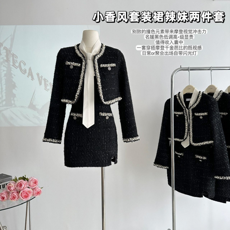 샤넬 스타일 원피스 가을 여성의 작은 뜨거운 소녀 투피스 슬링 스커트 짧은 재킷 재킷 투피스 세트스토어 가기
