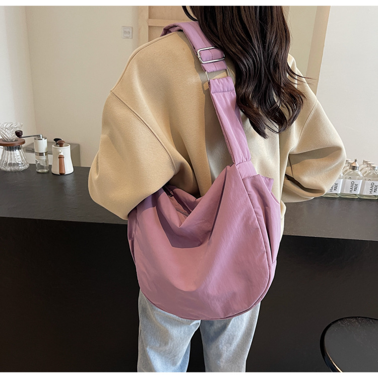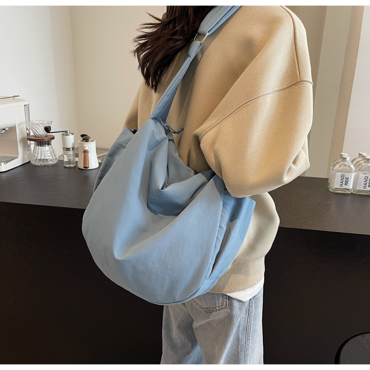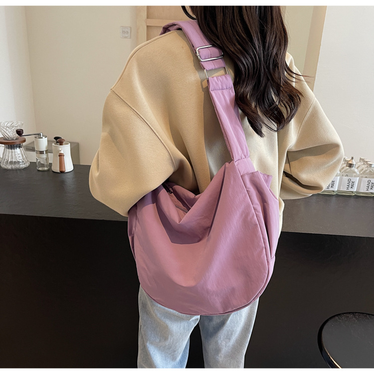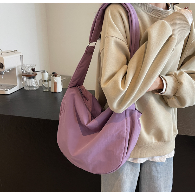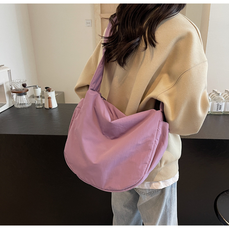 한국 스타일의 부드러운 소녀 가방 여성의 2024 새로운 유행 간단한 단색 어깨 크로스 바디 가방 일본 하라주쿠 만두 백스토어 가기