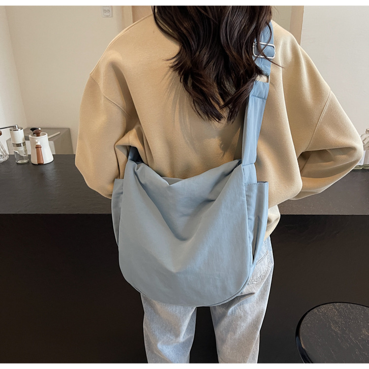 한국 스타일의 부드러운 소녀 가방 여성의 2024 새로운 유행 간단한 단색 어깨 크로스 바디 가방 일본 하라주쿠 만두 백