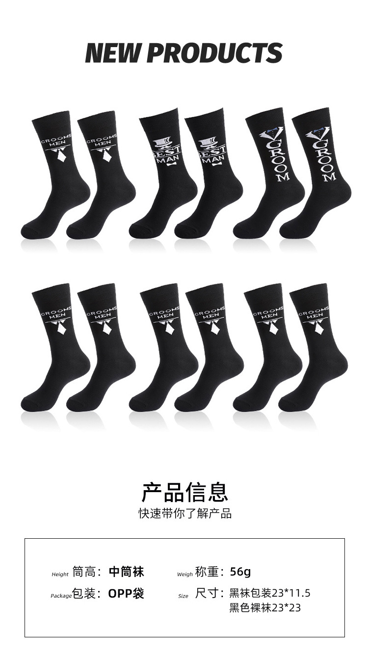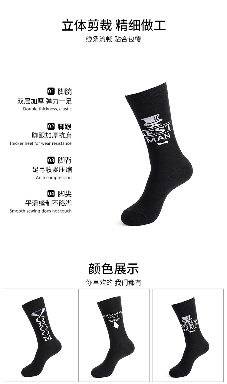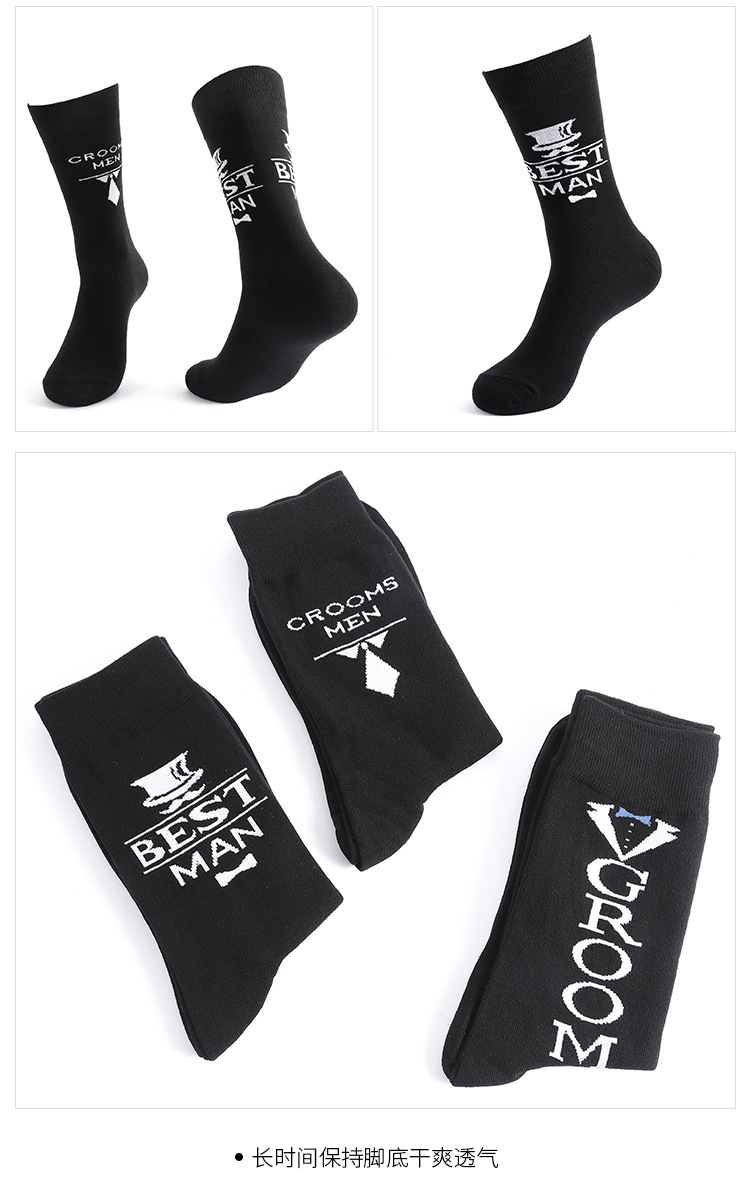 웨딩 신랑 양말 창조적 인 편지 스타킹 통기성 땀을 흘리는 스타킹 검은 신랑 양말 재고 도매