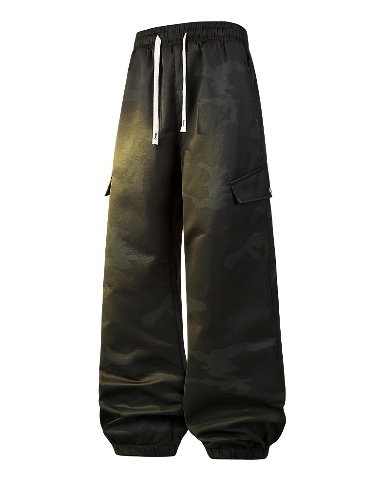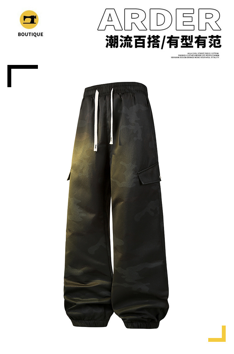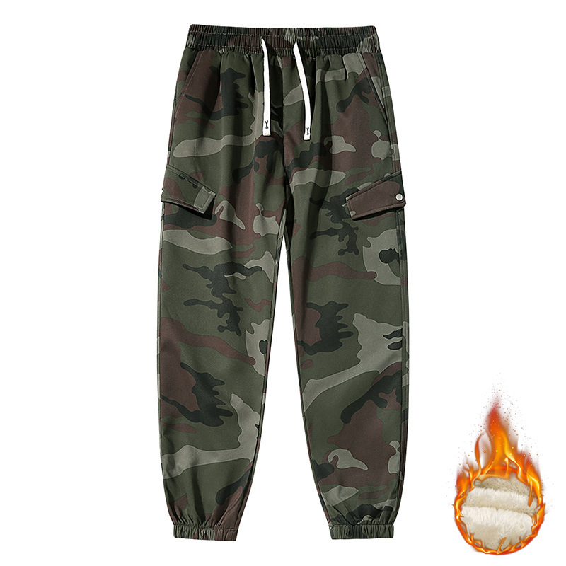 국경 간 위장 오버롤 남성용 느슨한 미국 스타일 플러스 사이즈 캐주얼 한 가을과 겨울 두꺼운 기모 대외 무역 멀티 백 바지