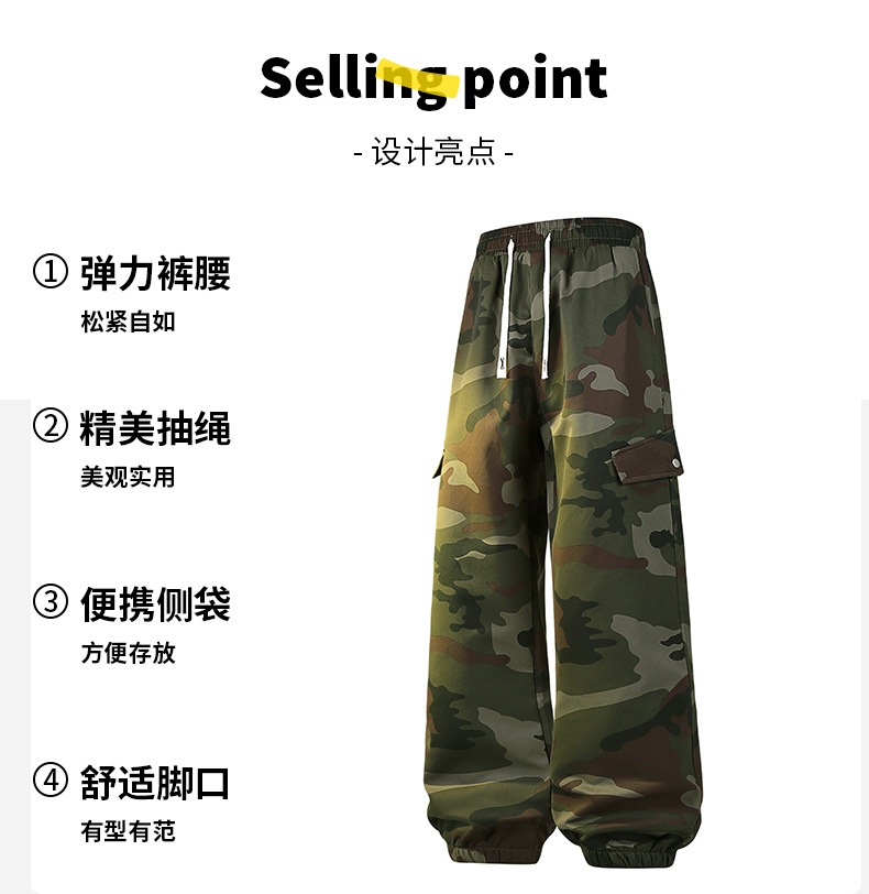 국경 간 위장 오버롤 남성용 느슨한 미국 스타일 플러스 사이즈 캐주얼 한 가을과 겨울 두꺼운 기모 대외 무역 멀티 백 바지스토어 가기