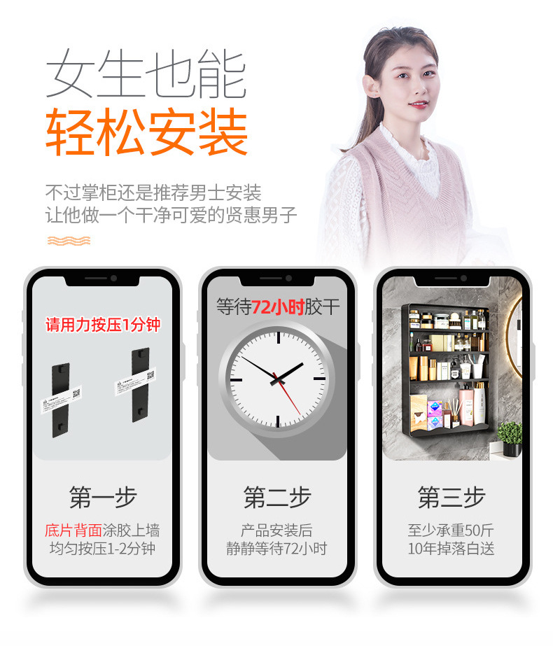 다기능 주방 욕실 무타공 벽걸이 수납 선반 주방용품 수납 선반