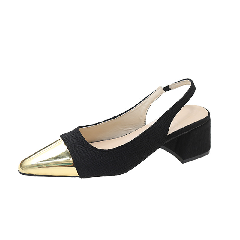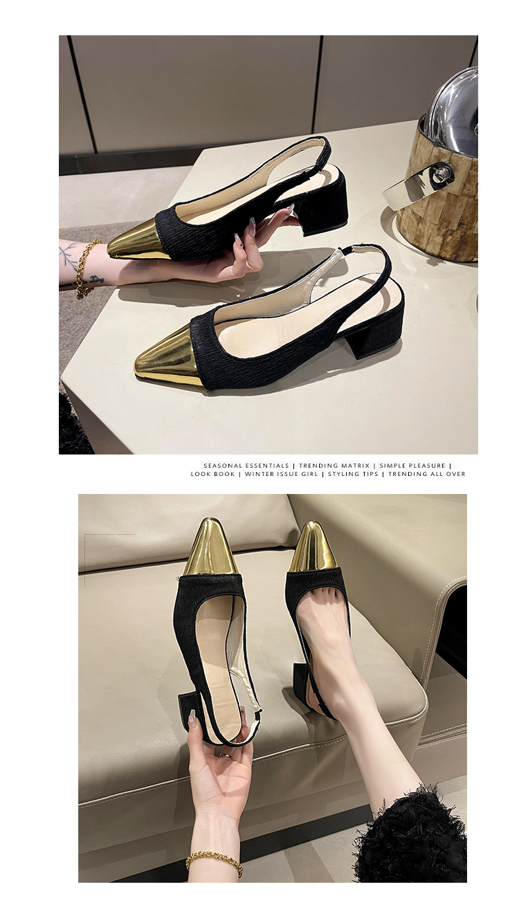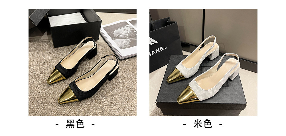 샤넬 스타일 두꺼운 힐 하이힐 신발 프랑스 작은 샌들 여성 2024 봄과 여름 새로운 우아한 스퀘어 발가락 치마 신발스토어 가기