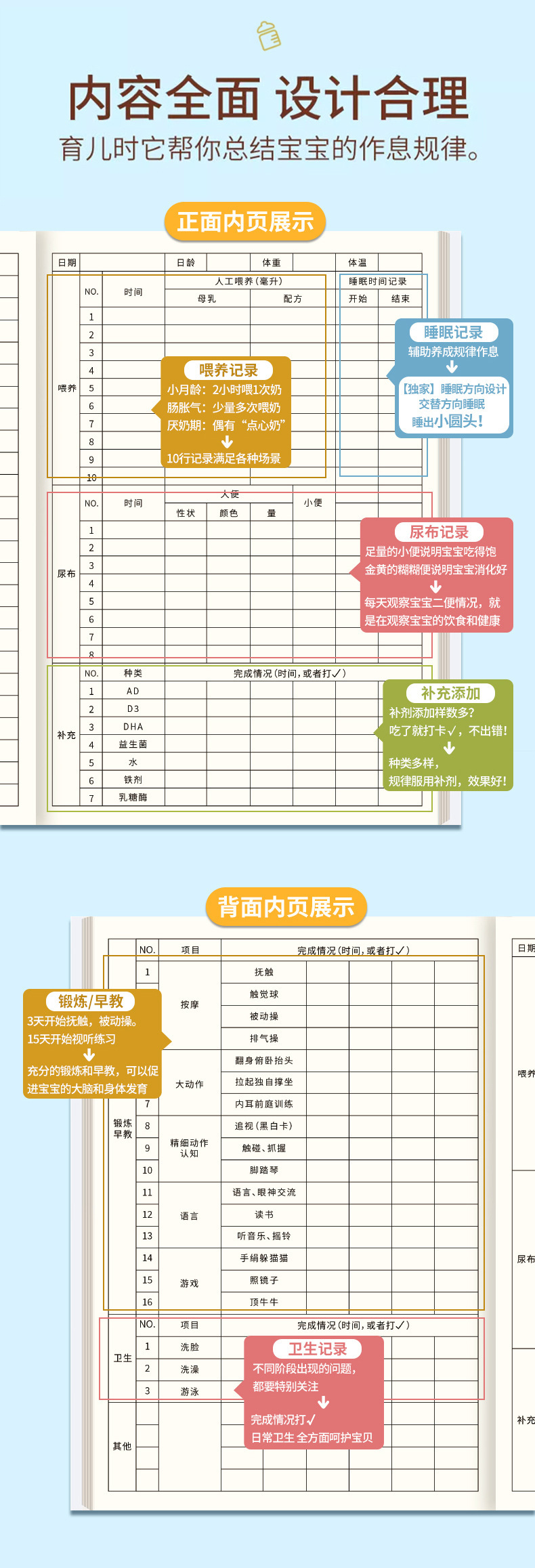 영아 수유 기록책 아기 수유 저널 책 신생아 매일 휴식 모유 양식 보충 식량 성장