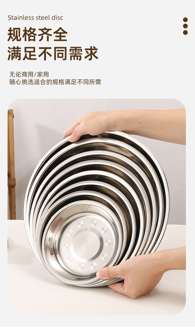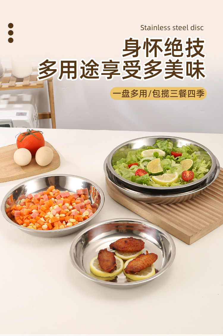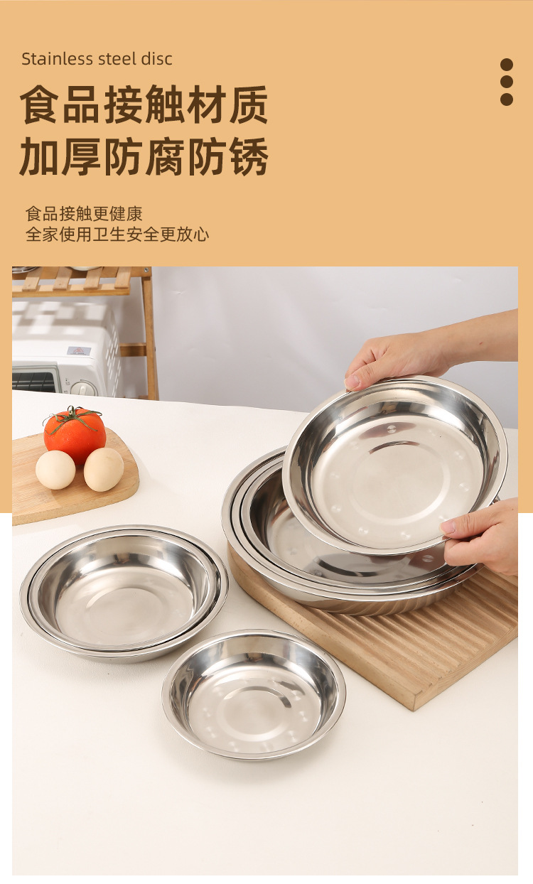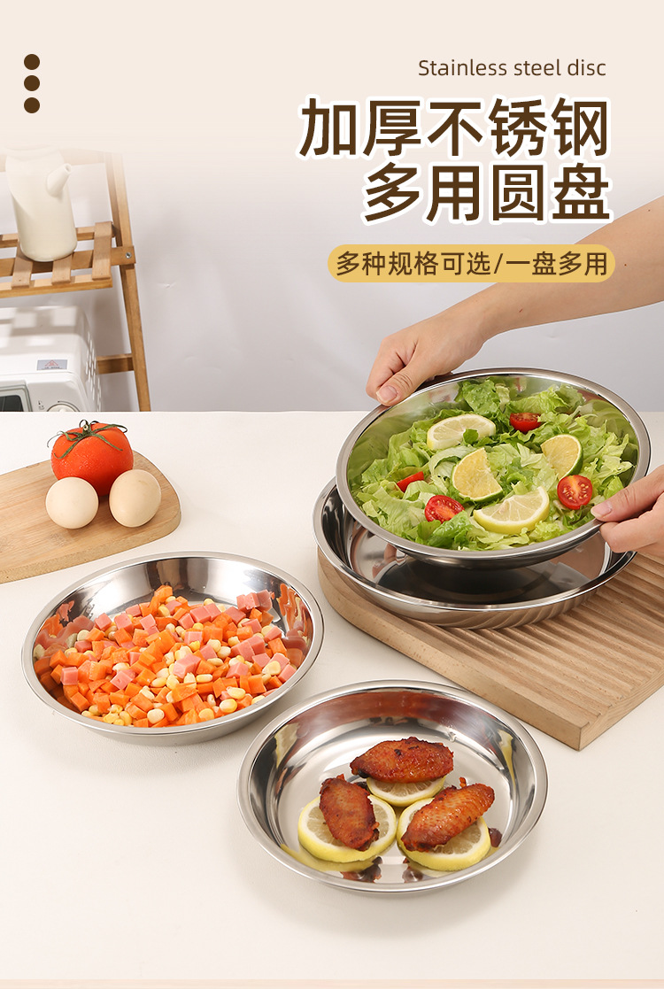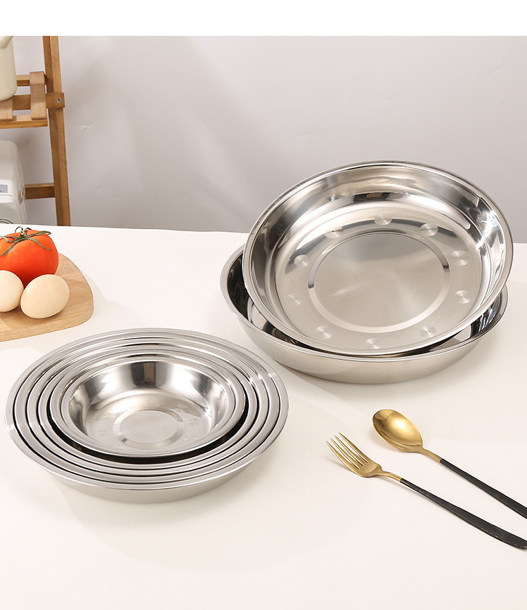 스테인레스 스틸 접시 대형 디스크 플랫 플레이트 얕은 플레이트 창조적 인 만두 접시 두꺼운 작은 식기 큰 크기스토어 가기