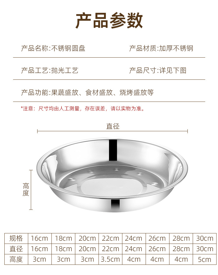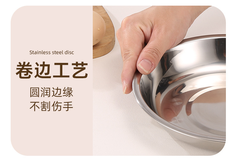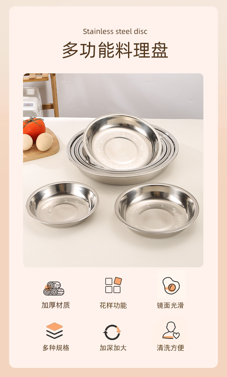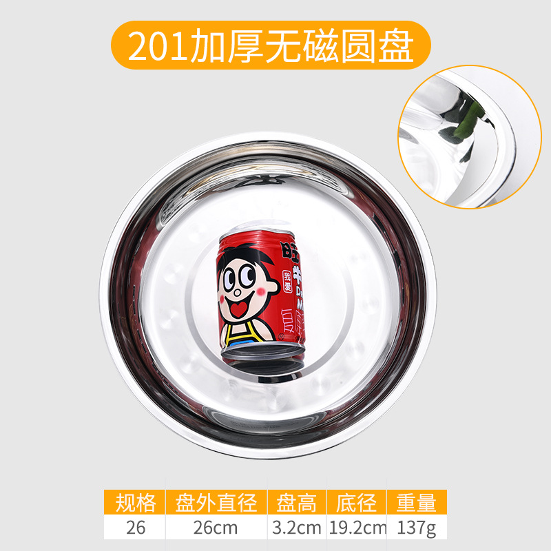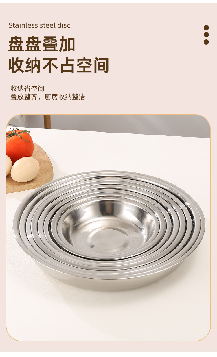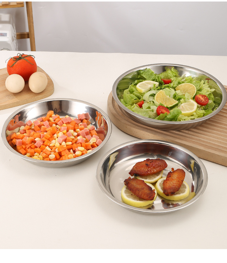 스테인레스 스틸 접시 대형 디스크 플랫 플레이트 얕은 플레이트 창조적 인 만두 접시 두꺼운 작은 식기 큰 크기스토어 가기