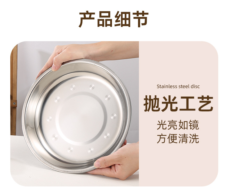 스테인레스 스틸 접시 대형 디스크 플랫 플레이트 얕은 플레이트 창조적 인 만두 접시 두꺼운 작은 식기 큰 크기