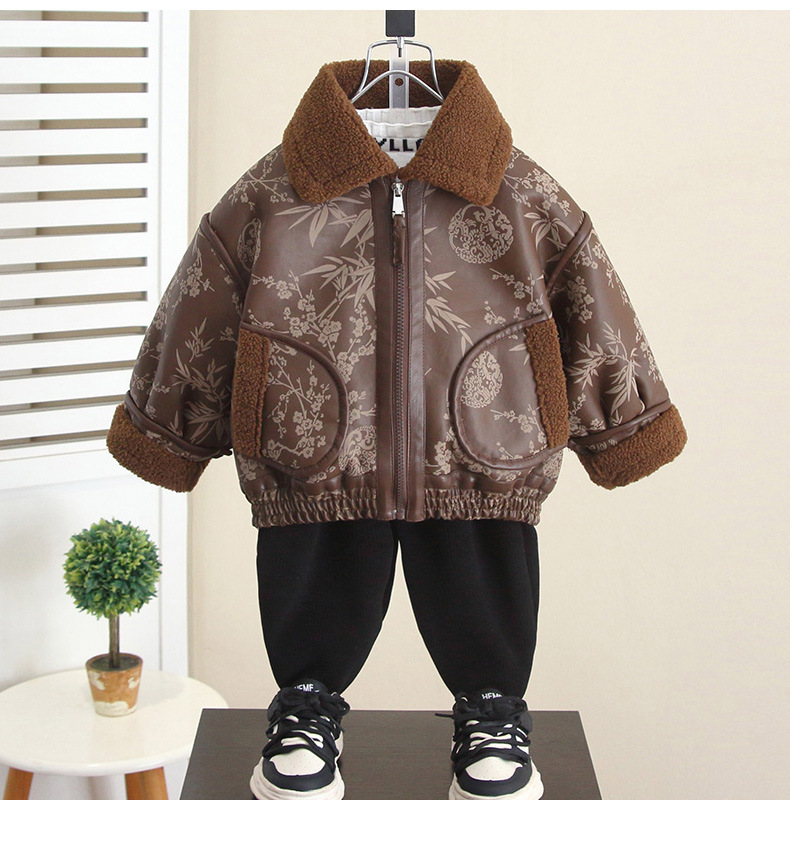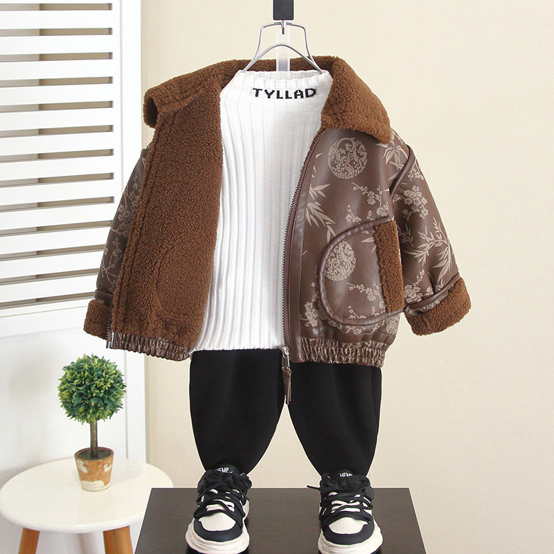 6609 소년 벨벳 두꺼운 재킷 2025 가을, 겨울 새로운 한국 스타일 가죽 재킷 아기 옷 겨울 의류 유행스토어 가기