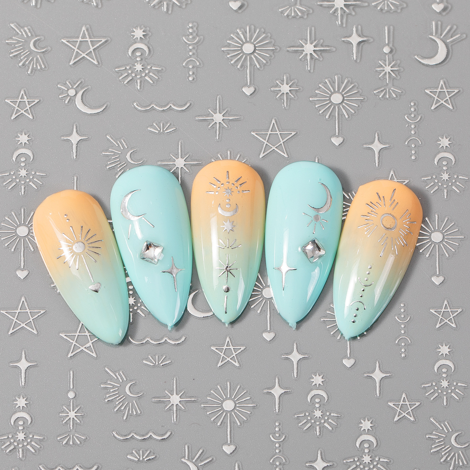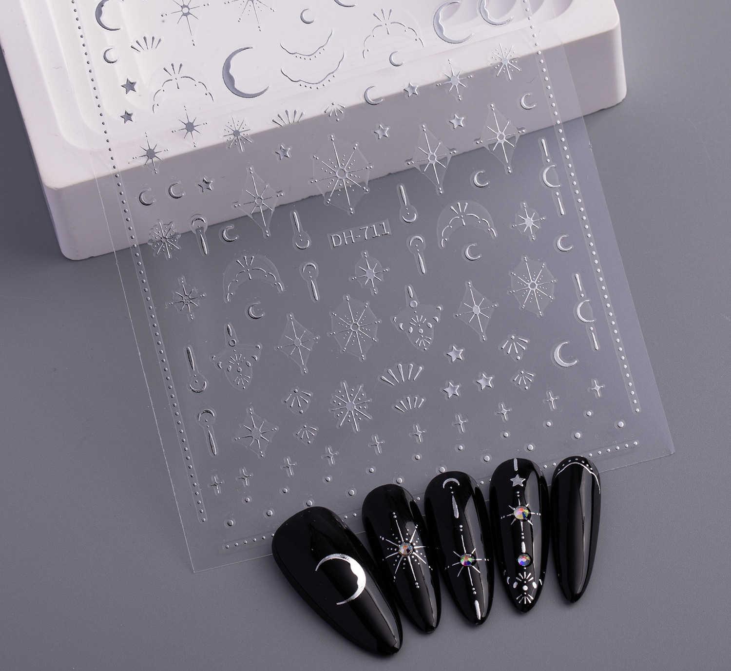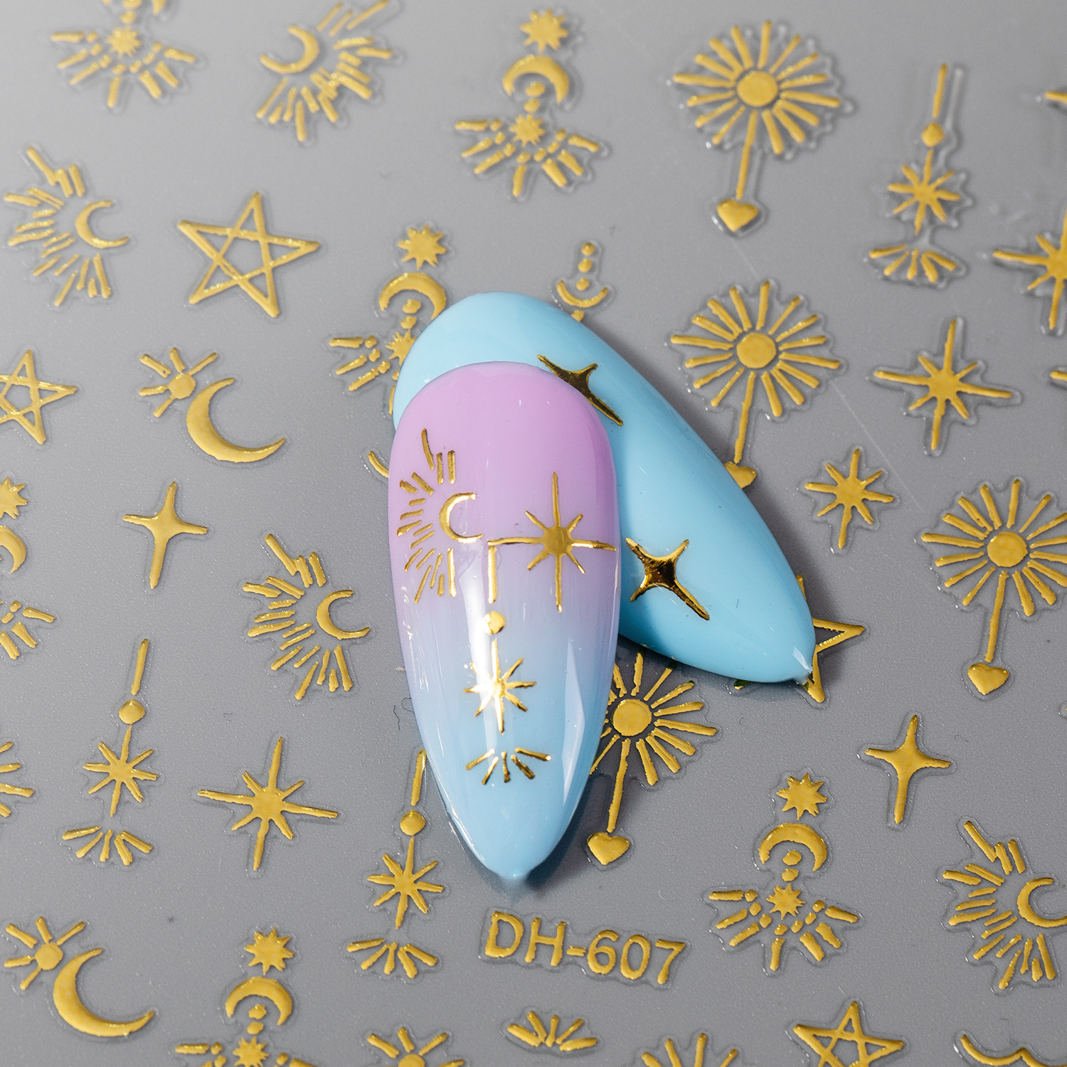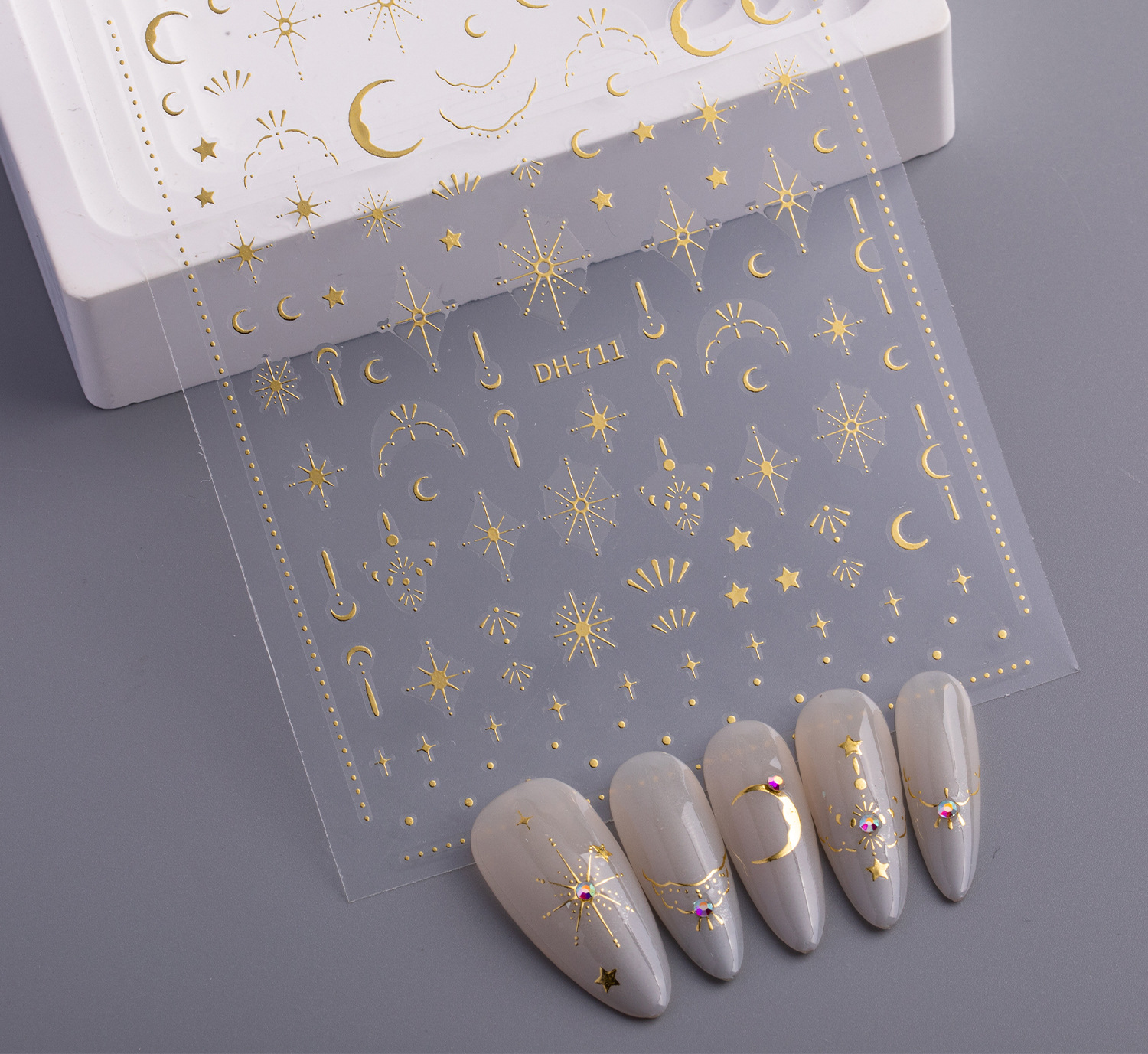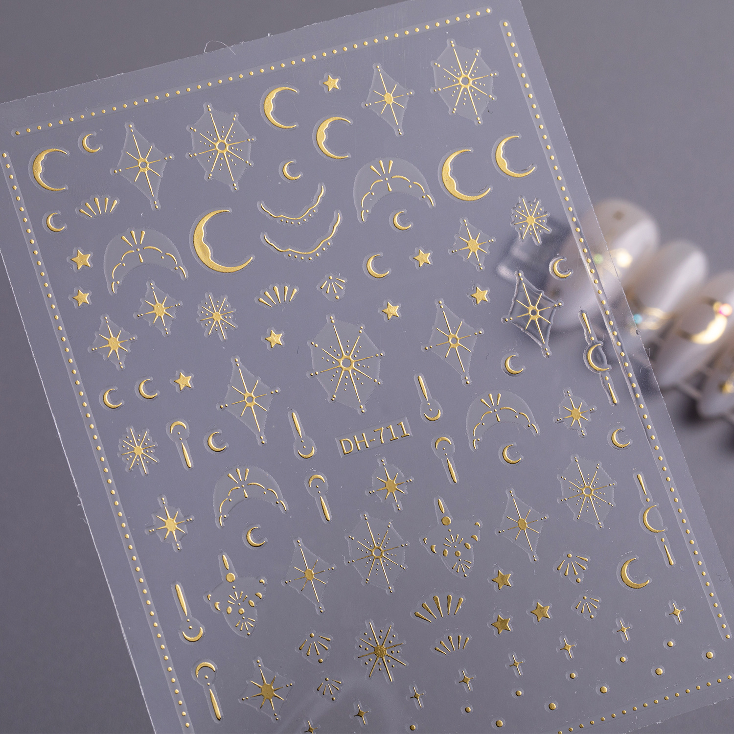 보헤미안 스타앤문 네일 스티커 플랫 심플 패션 금박 별하늘 네일 스티커 장식품 DH 스타일