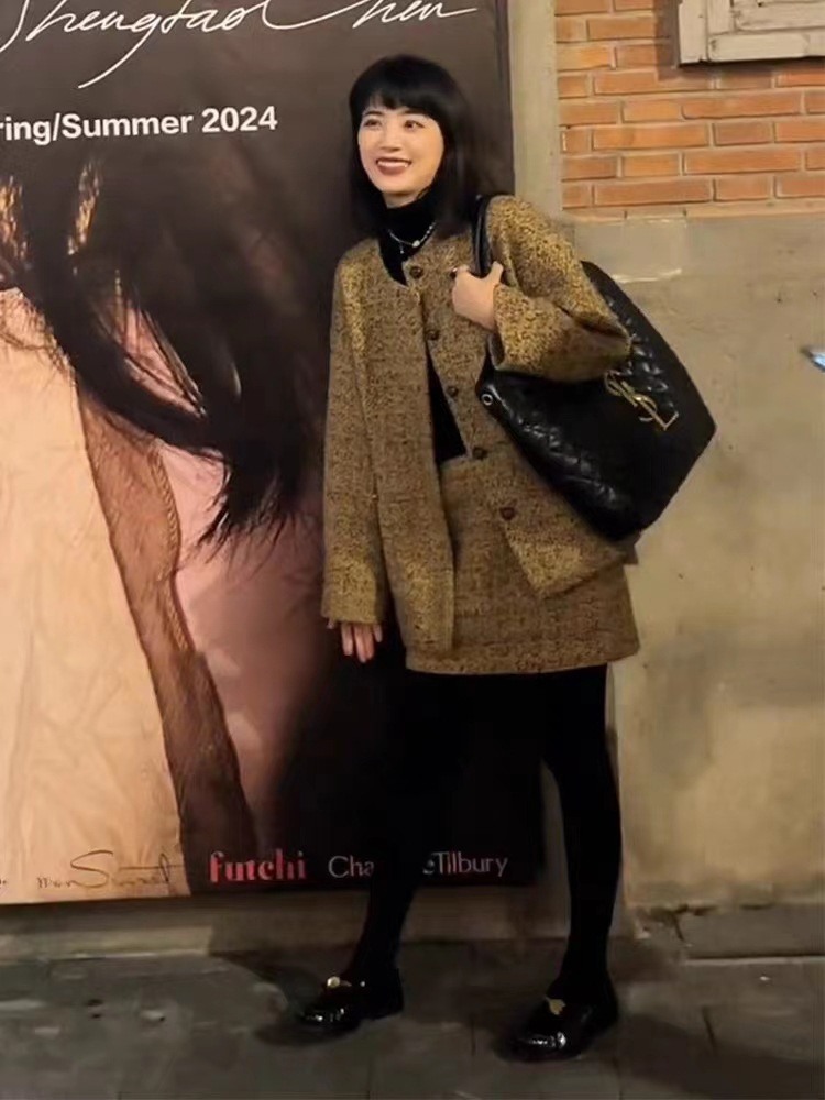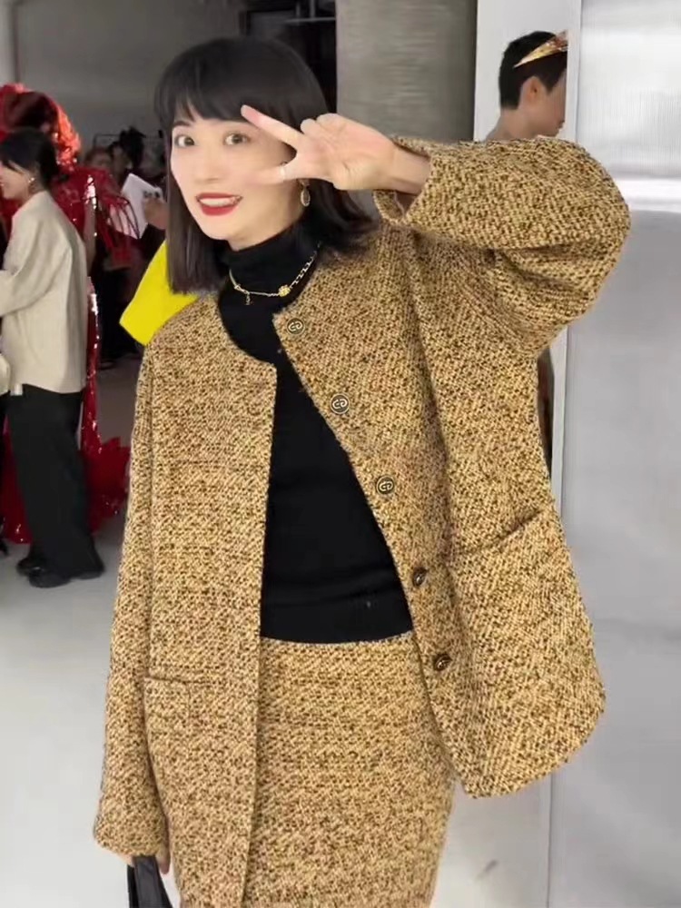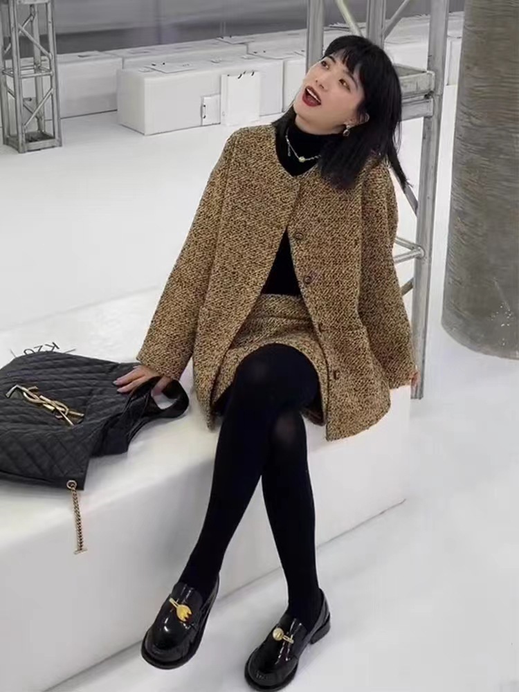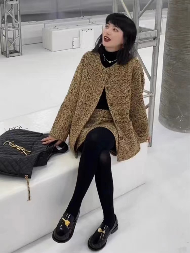 FL232159 가을 새로운 우아한 패션 샤넬 스타일 원피스 폭발 작은 원피스 헵번 스타일 여성용 투피스 세트스토어 가기