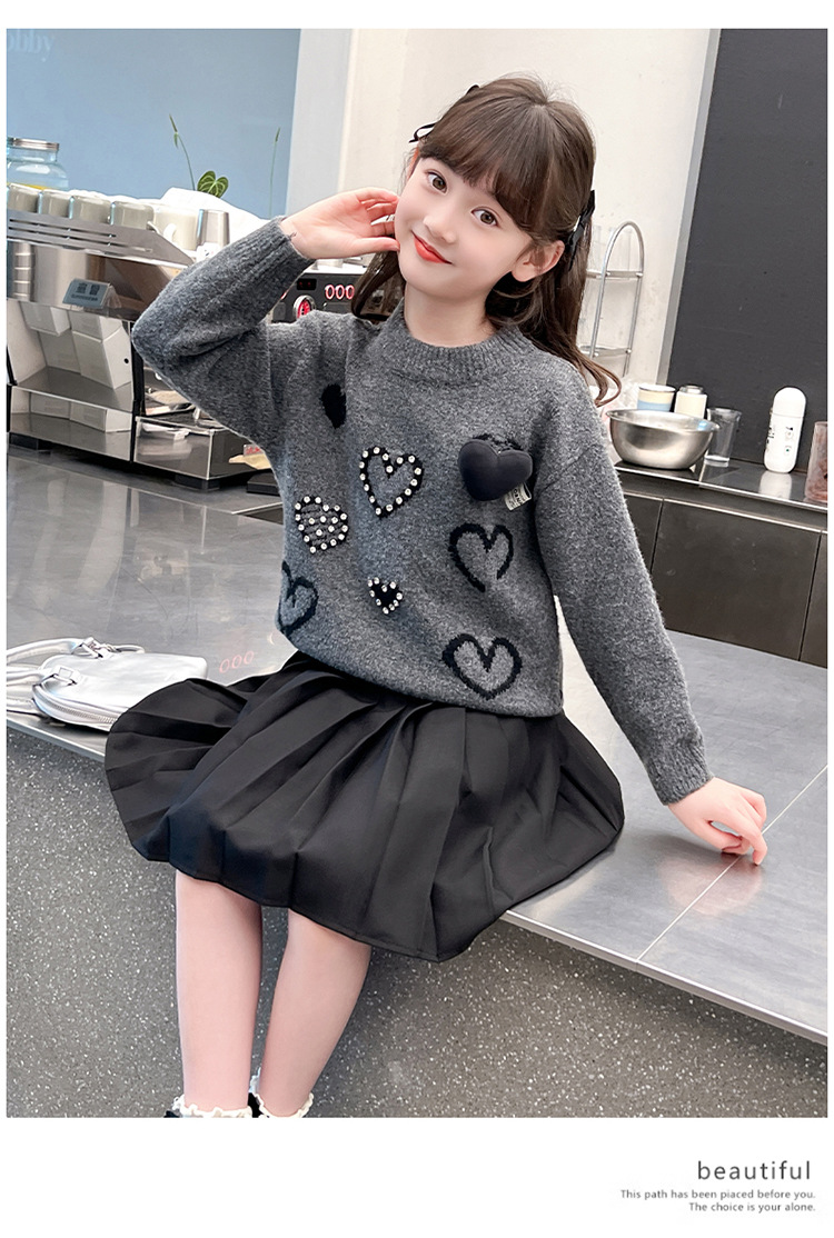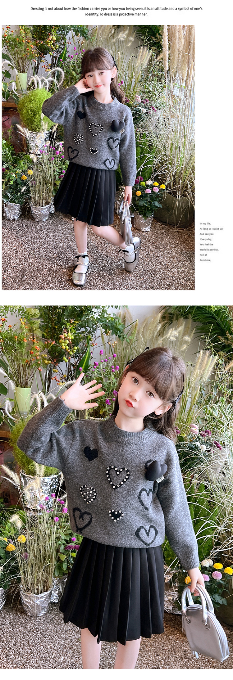 소녀들의 가을과 겨울 2024 새로운 어린이 니트 스웨터 서양식 한국 아기 스웨터 풀오버베이스 탑스토어 가기