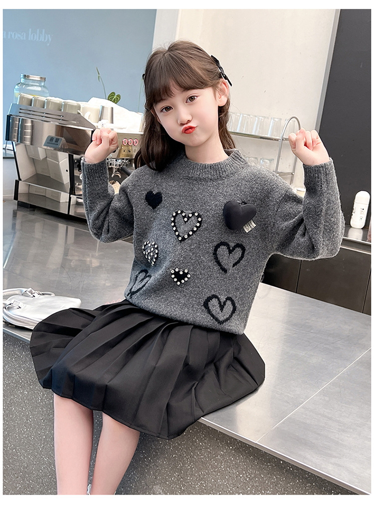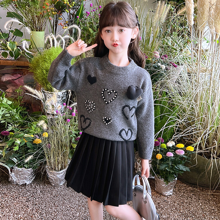 소녀들의 가을과 겨울 2024 새로운 어린이 니트 스웨터 서양식 한국 아기 스웨터 풀오버베이스 탑