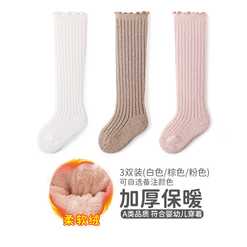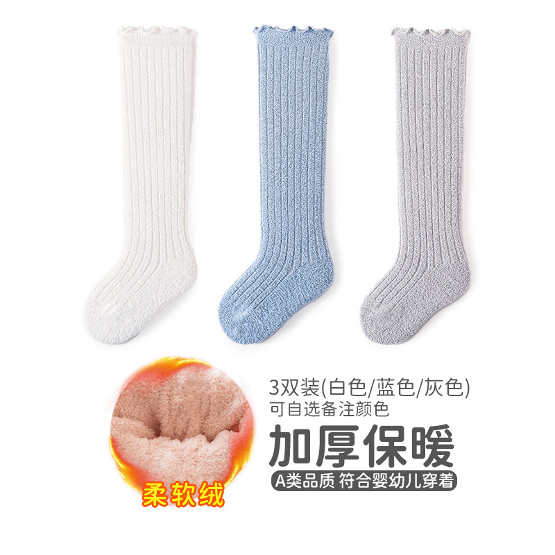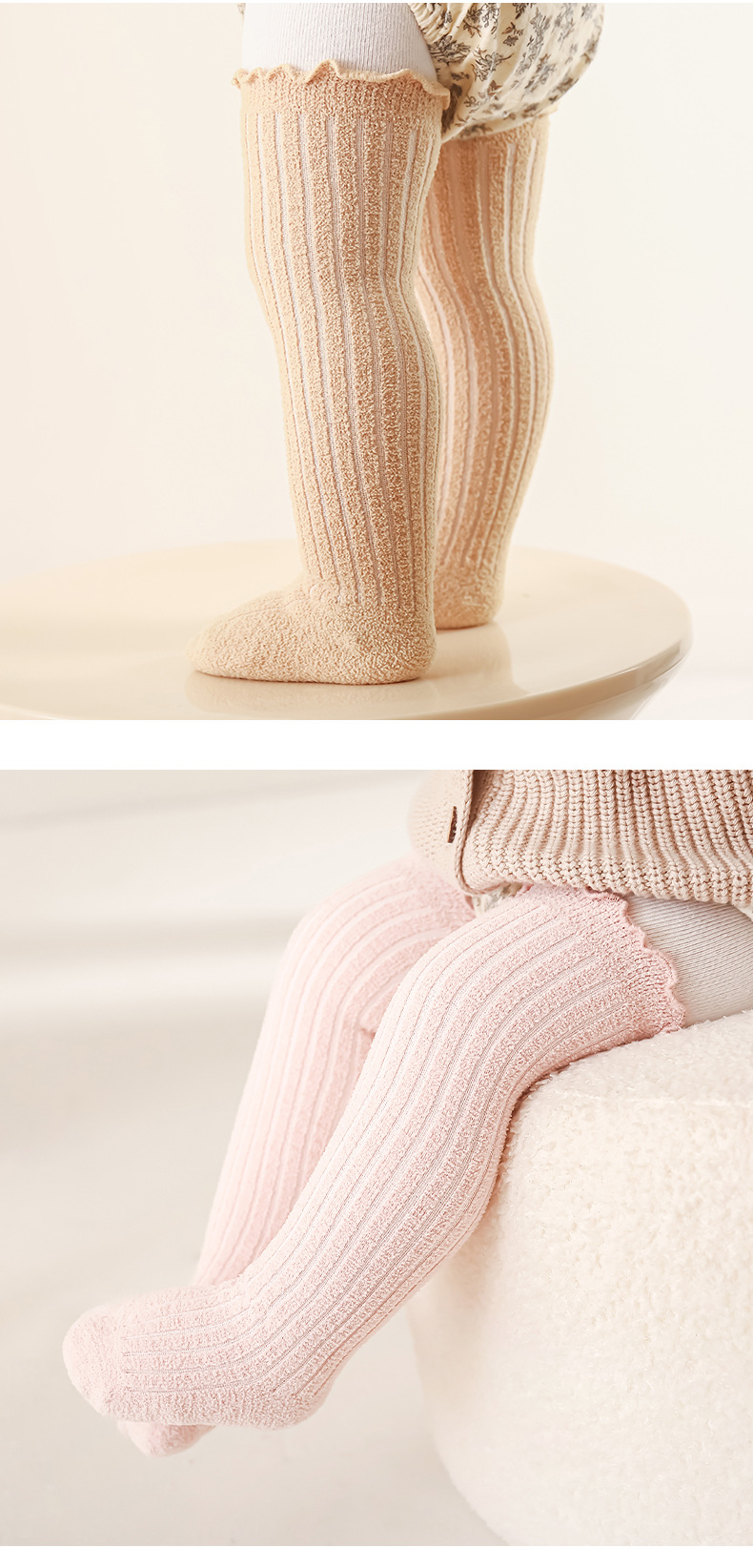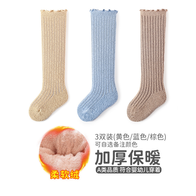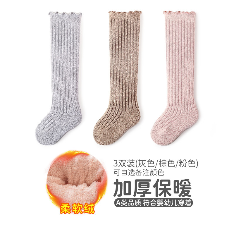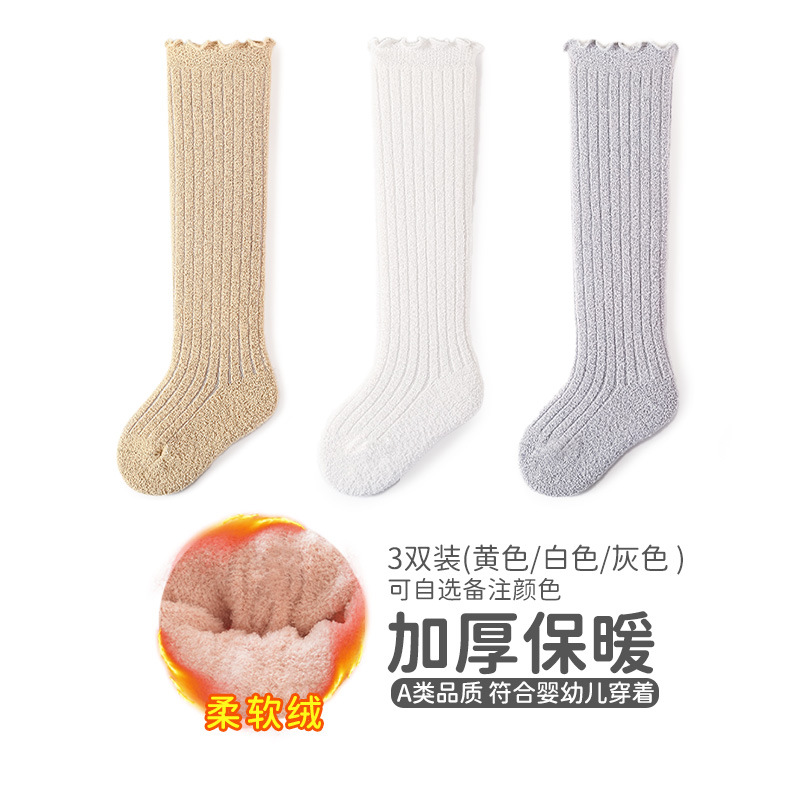 다이 파 아기 긴 양말 두꺼운 어린이 높은 양말 솔리드 컬러 우드 귀 가장자리 느슨한 신생아 양말 클래스 A스토어 가기