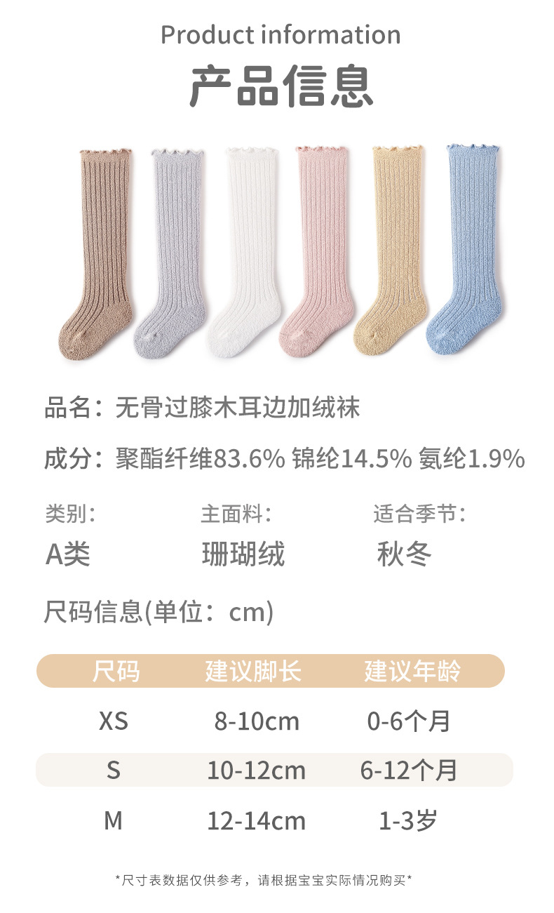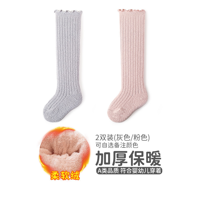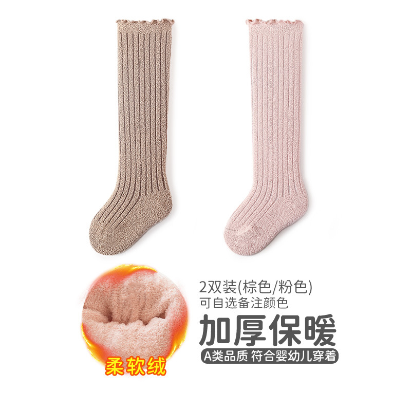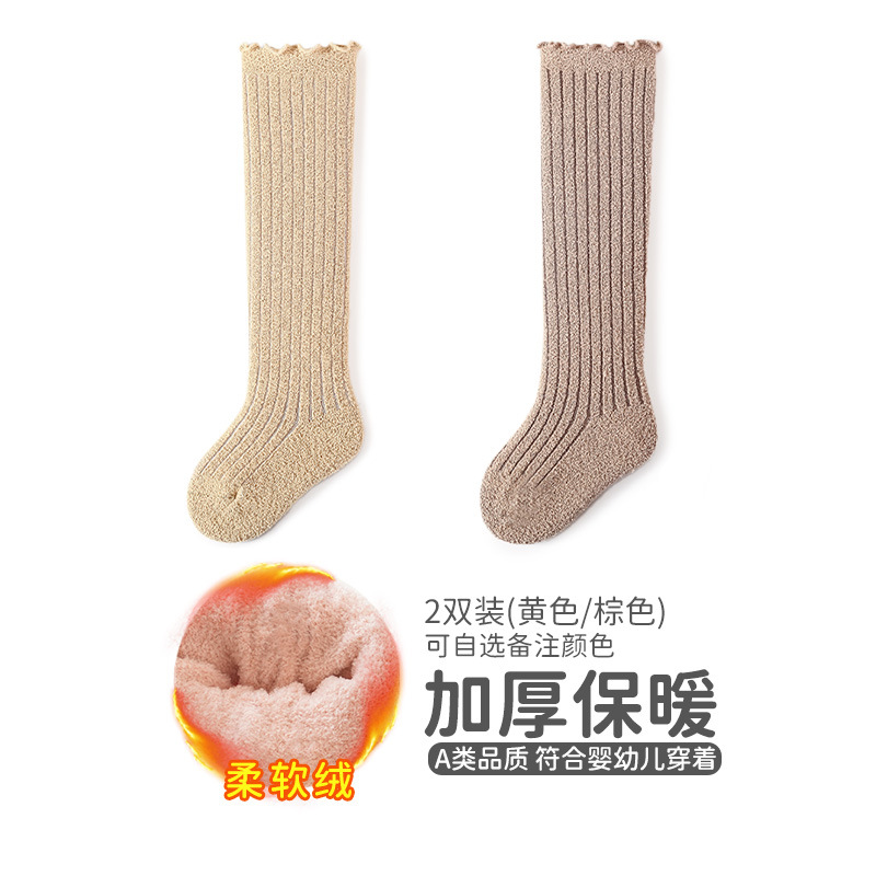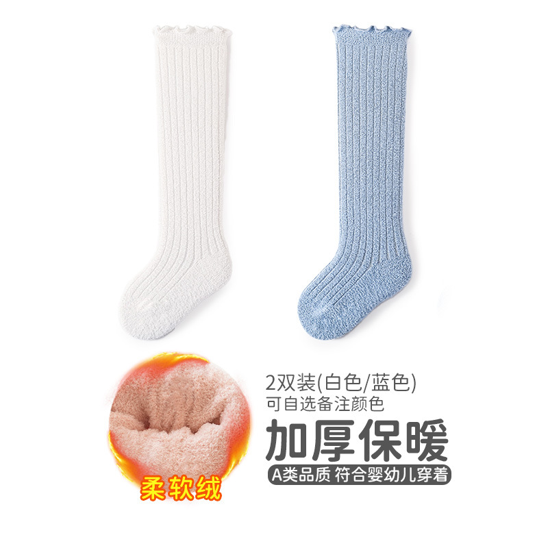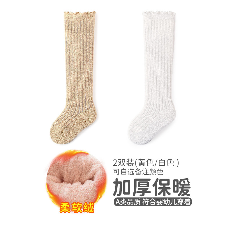다이 파 아기 긴 양말 두꺼운 어린이 높은 양말 솔리드 컬러 우드 귀 가장자리 느슨한 신생아 양말 클래스 A스토어 가기