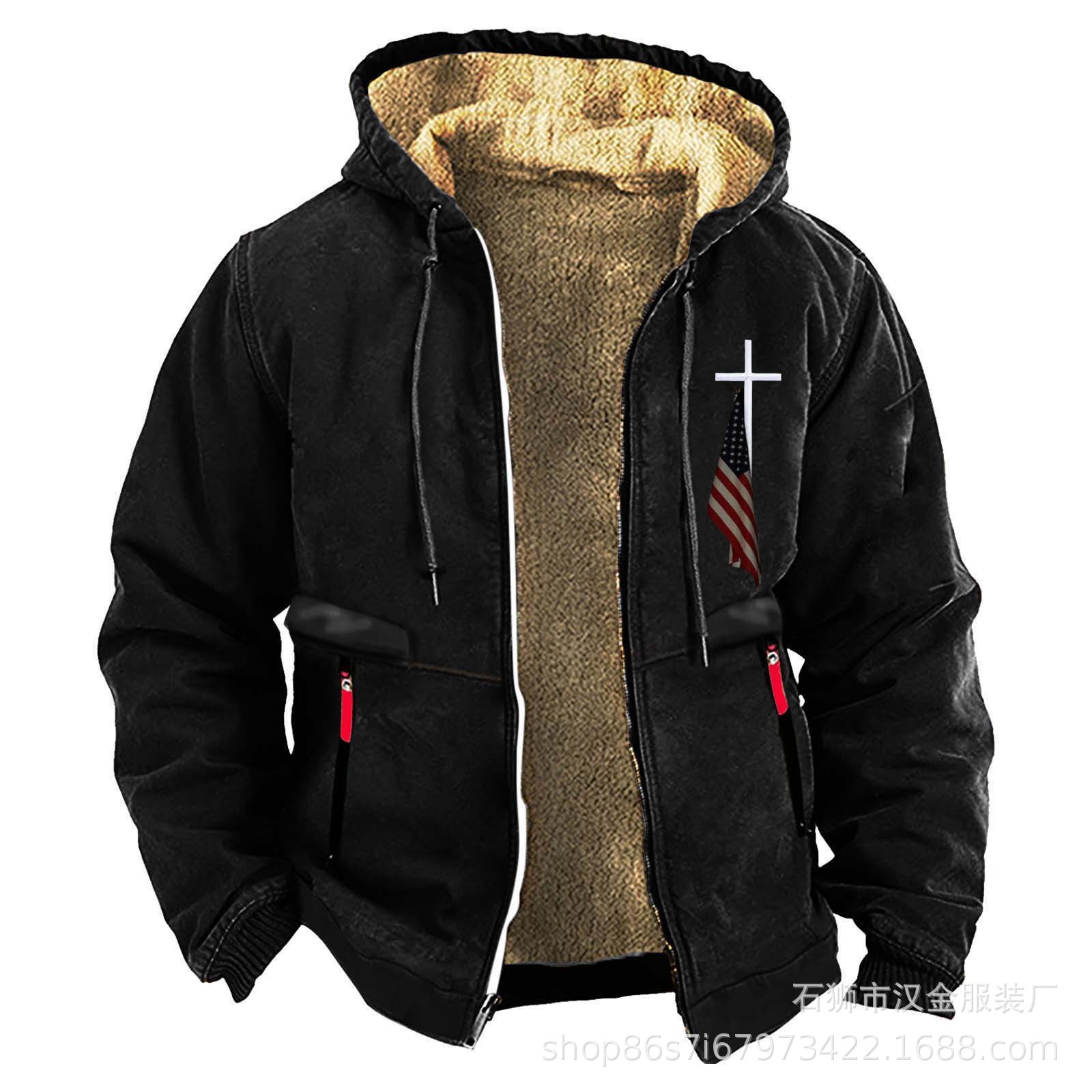 유럽 크기 느슨한 국경 간 캐시미어 남성용 스웨터 가을과 겨울 기모 후드 스포츠웨어 캐주얼 카디건 따뜻한 재킷