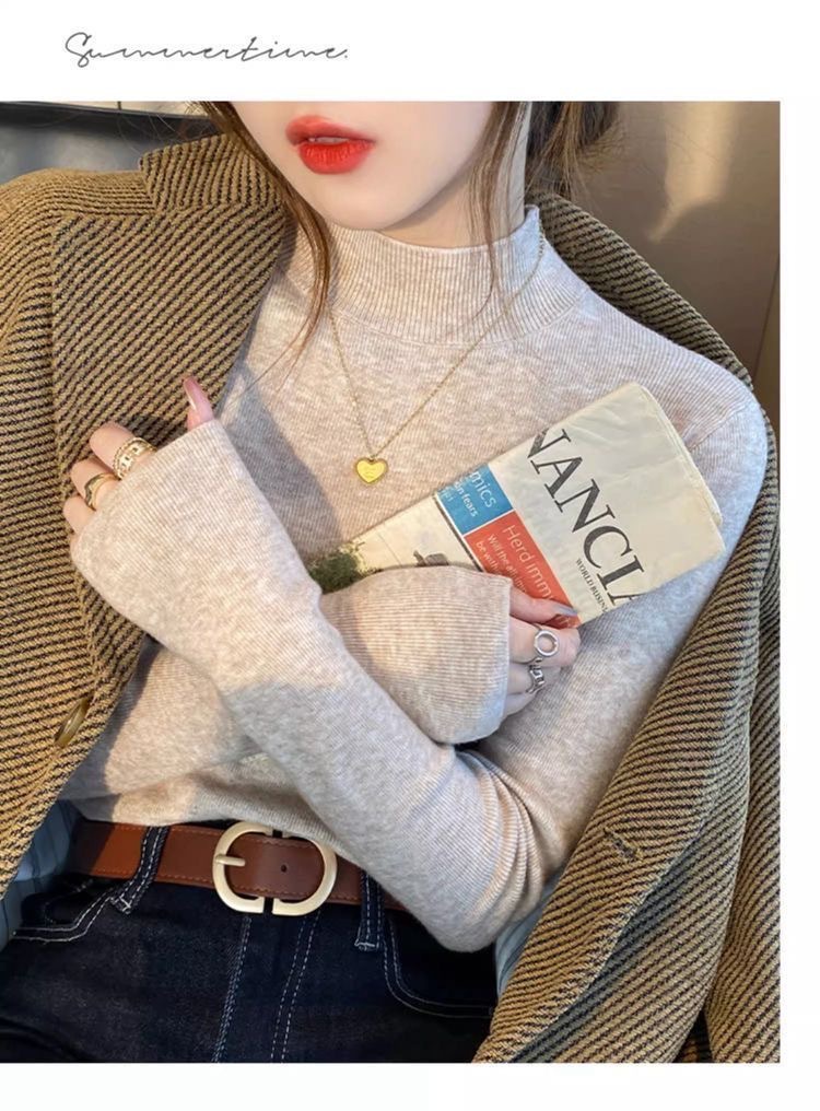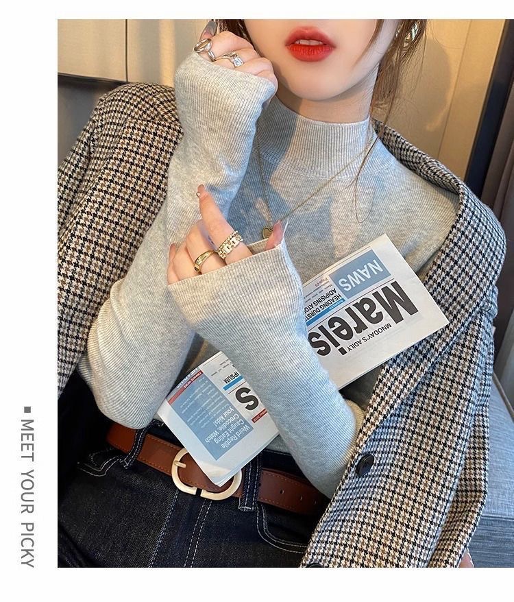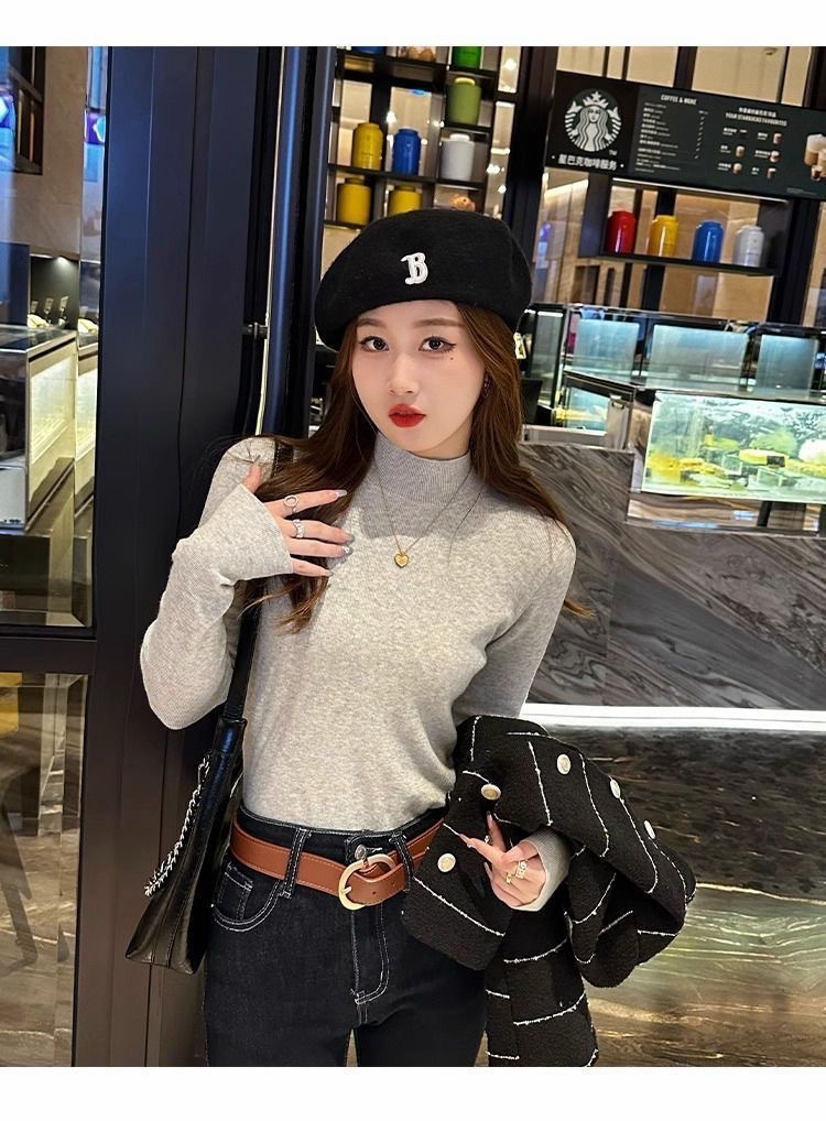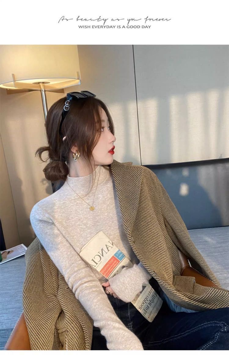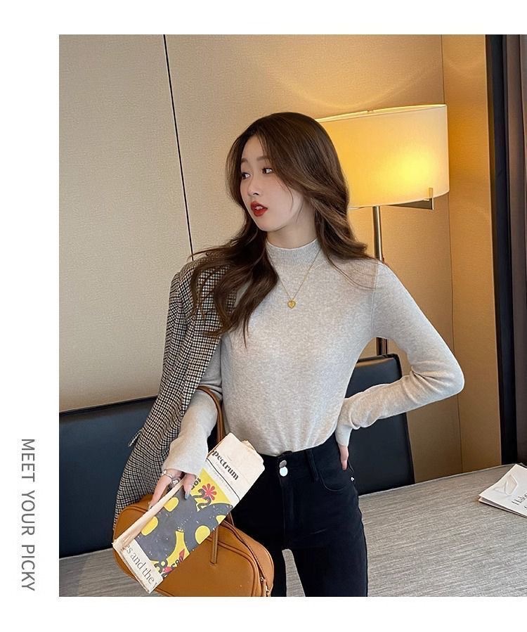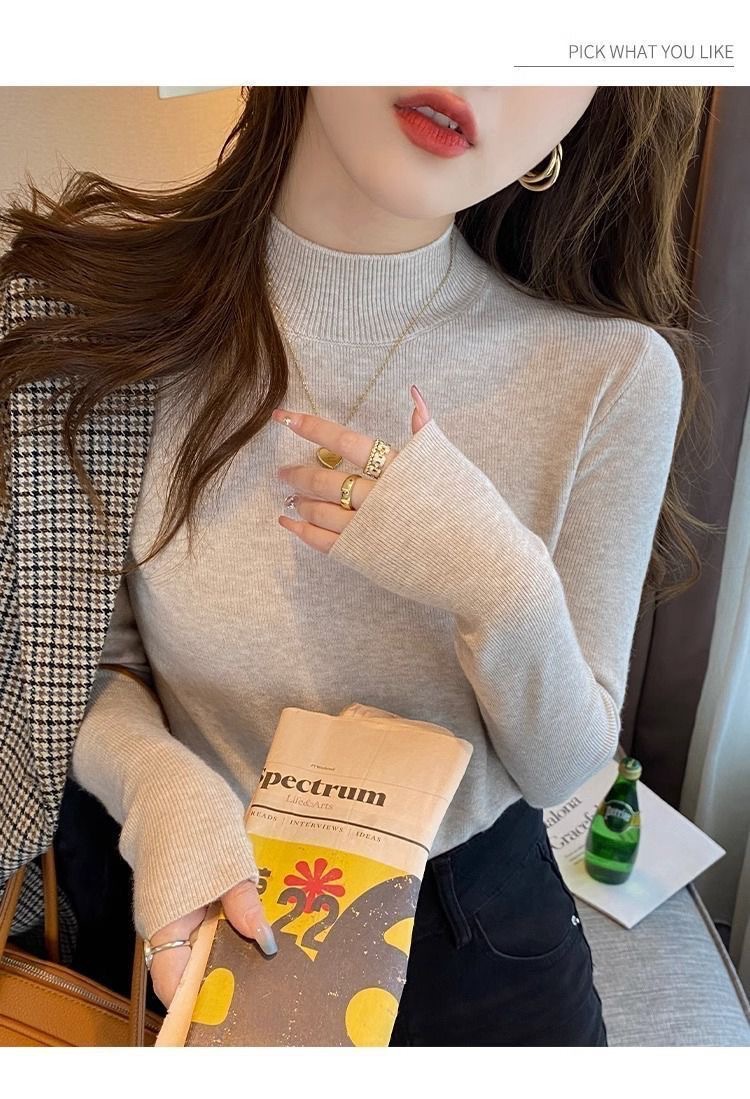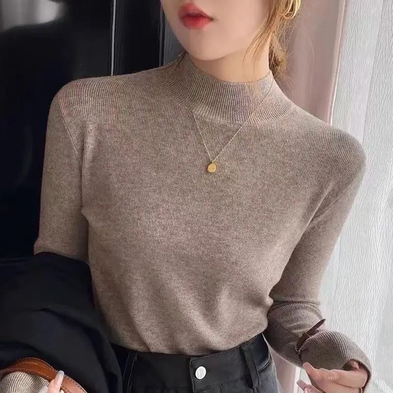 반 터틀넥 스웨터 여성의 가을 및 겨울 새로운 도착 스웨터 슬림 핏 슬리밍 내부 긴팔 모든 매치 스타일리스트베이스 셔츠 탑