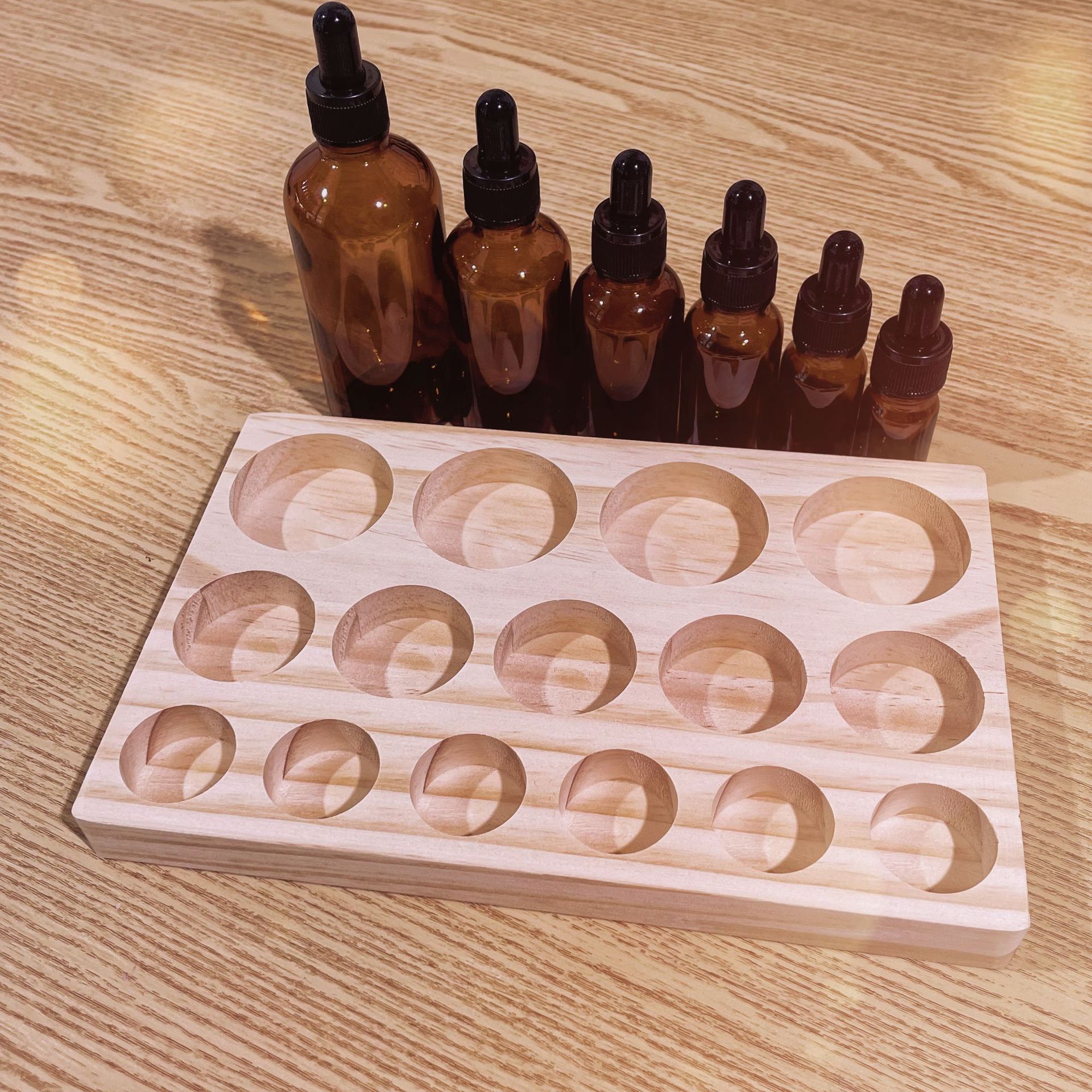 공장 재고 나무 기름 병 못 폴란드 병 저장 디스플레이 랙 나무 저장 상자