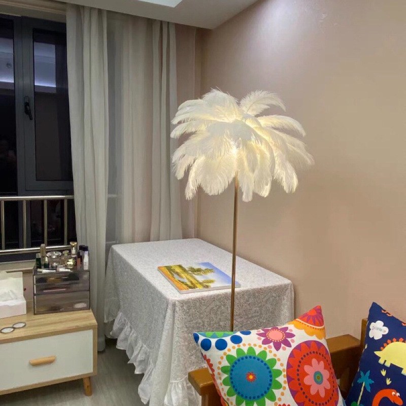 깃털 바닥 램프 거실 침실 미국 스타일 가벼운 럭셔리 창조적 인 인터넷 연예인 타조 Instagram 스타일 북유럽 스타일 라이브 방송 장식 테이블 램프스토어 가기