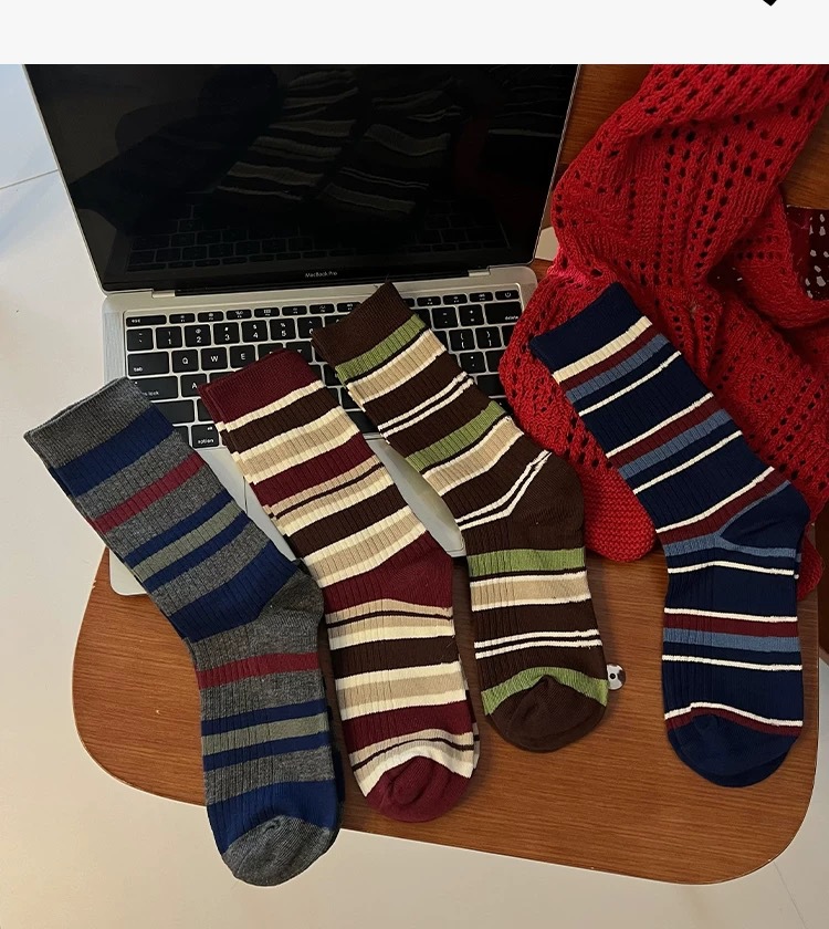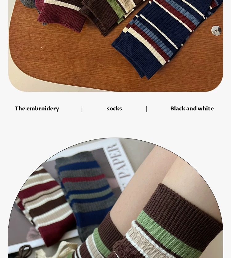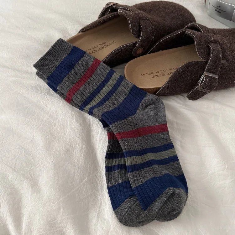 빈티지 명암 줄무늬 양말 어린이 중간 길이 양말 Ins 트렌디 한 가을과 겨울 순면 맞춤형 학술 스타일 긴 길이 쌓인 양말스토어 가기