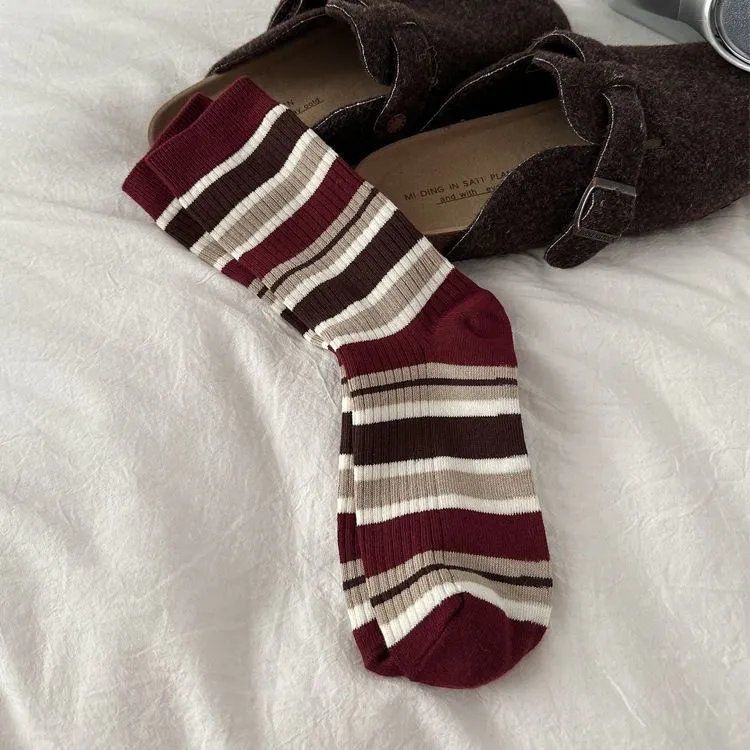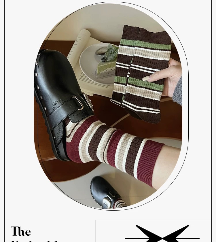 빈티지 명암 줄무늬 양말 어린이 중간 길이 양말 Ins 트렌디 한 가을과 겨울 순면 맞춤형 학술 스타일 긴 길이 쌓인 양말