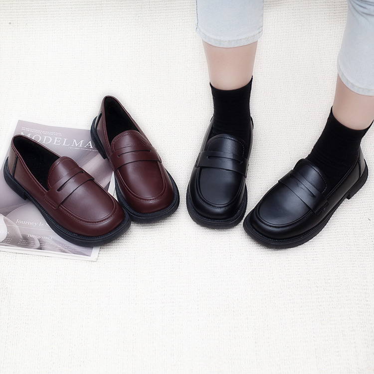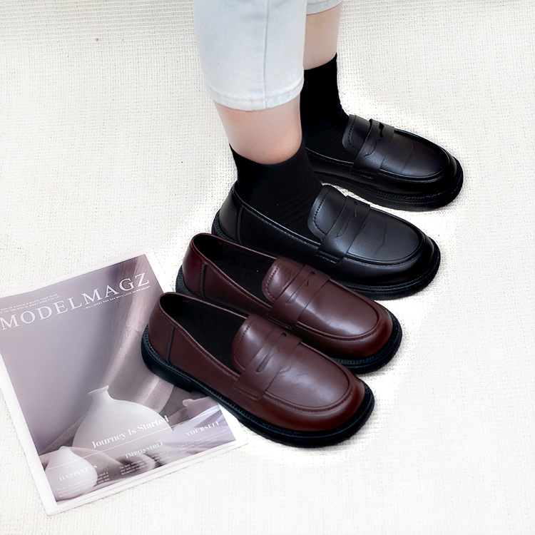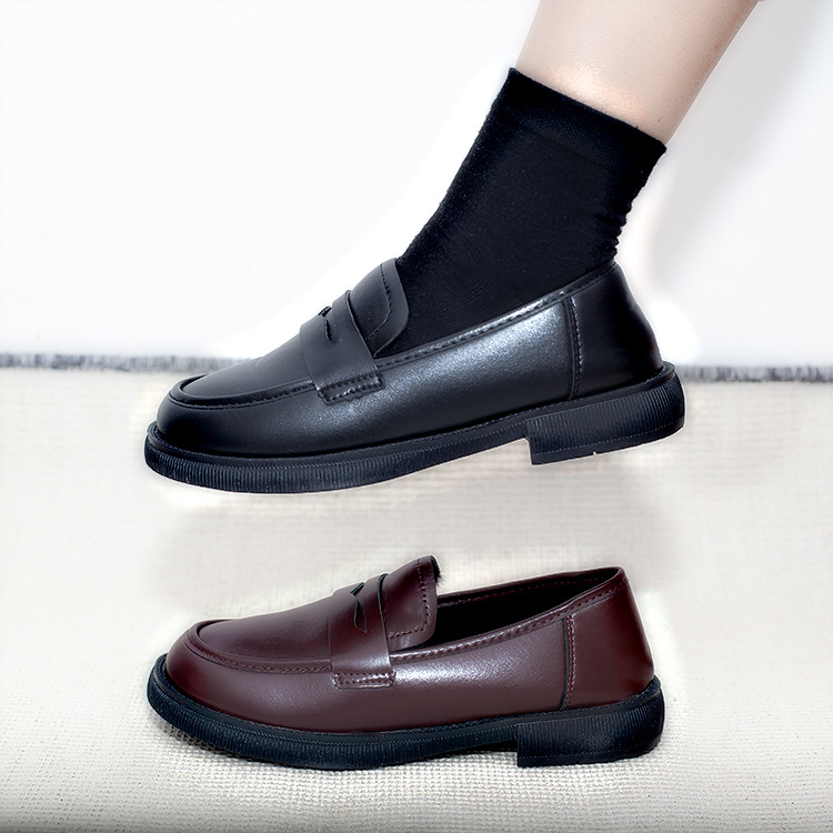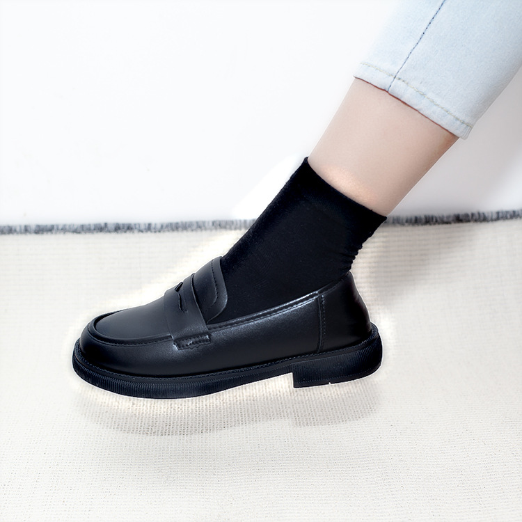 작은 가죽 신발 영국 스타일 싱글 레이어 신발 여성의 2024 새로운 봄과 가을 플랫 로퍼 올 매치 블랙 워크 슈즈 슬립 온스토어 가기