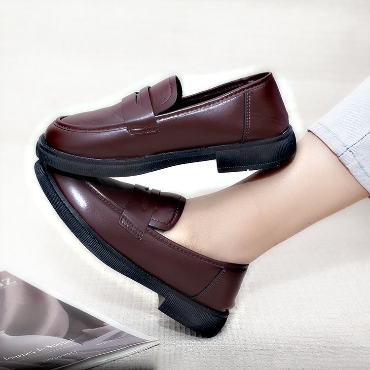 작은 가죽 신발 영국 스타일 싱글 레이어 신발 여성의 2024 새로운 봄과 가을 플랫 로퍼 올 매치 블랙 워크 슈즈 슬립 온