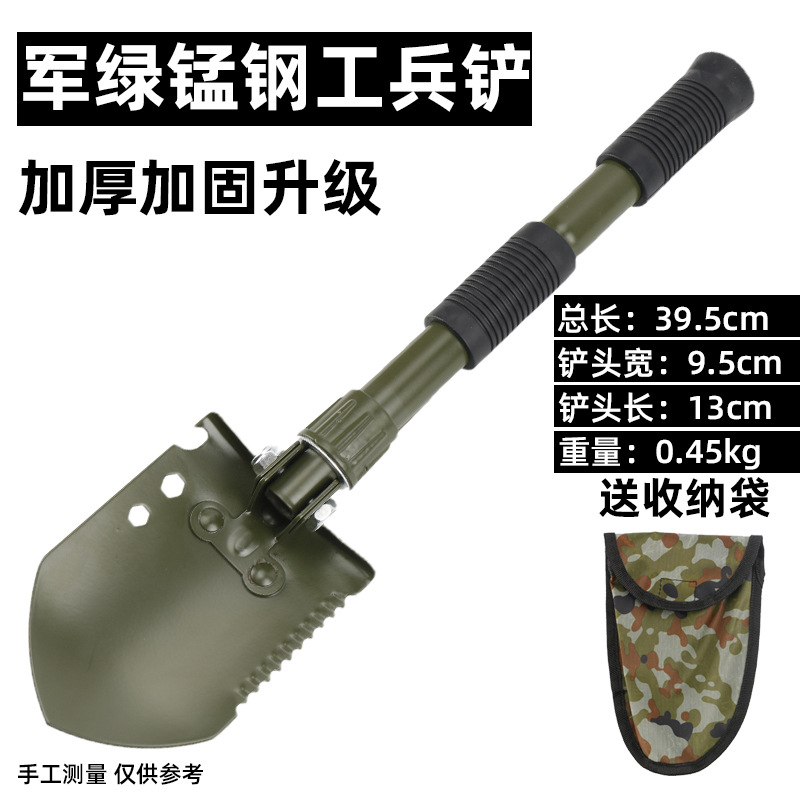 • [접이식] 군용 녹색 망간강 엔지니어 삽 [강화 및 두꺼워짐 및 업그레이드]