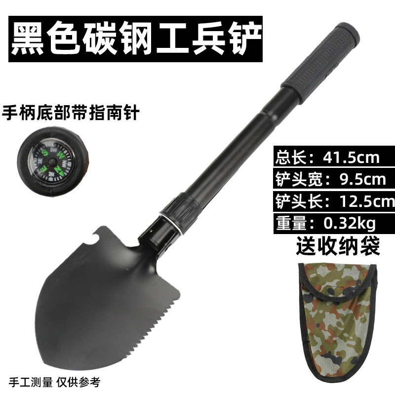 • [접이식] 나침반이 포함된 검정색 탄소강 엔지니어 삽