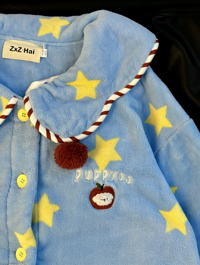 가을과 겨울 기모 두꺼운 플란넬 귀여운 달콤한 잠옷 세트 블루 스타 체리 홈 옷스토어 가기