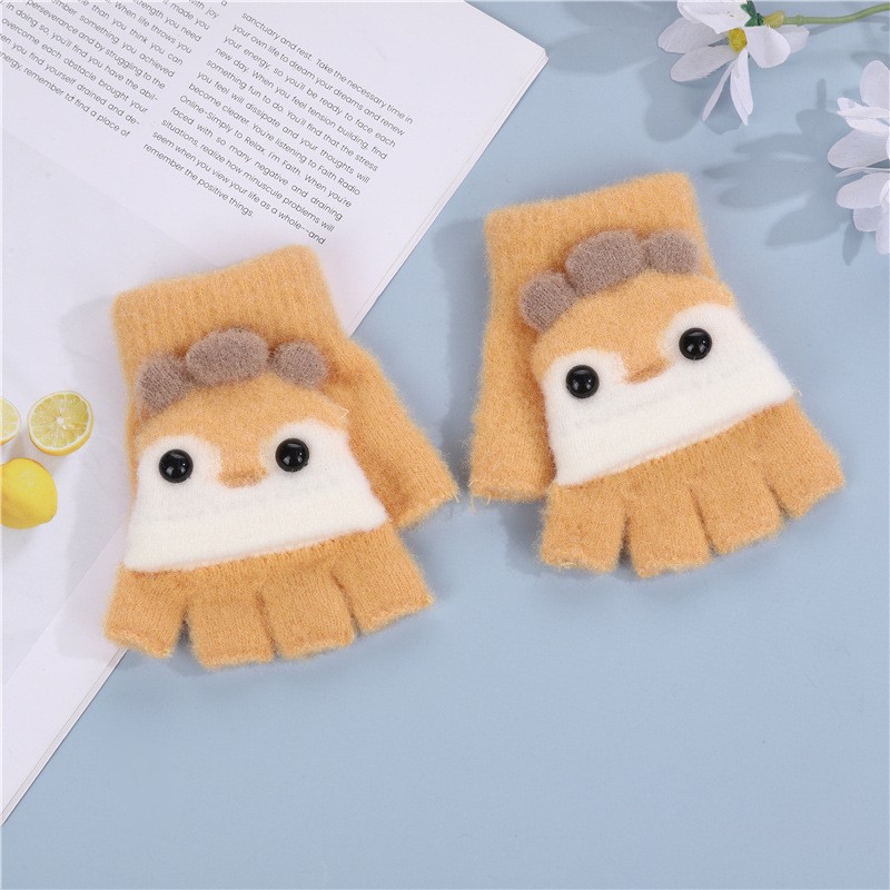 여자를위한 맞춤형 플립 장갑 2024 새로운 겨울 따뜻하고 귀여운 만화 Sanrio 소년 반 손가락 플러시스토어 가기