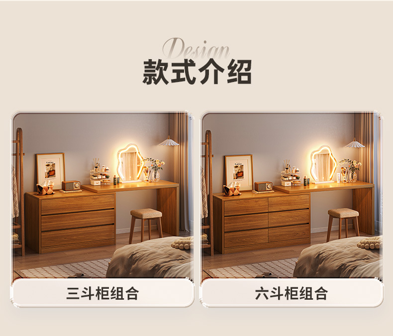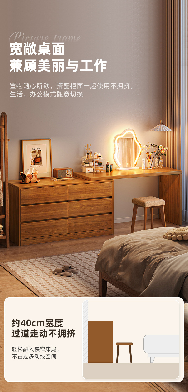 实木梳妆台卧室现代简约床尾斗柜化妆台一体收纳柜化妆桌带柜子