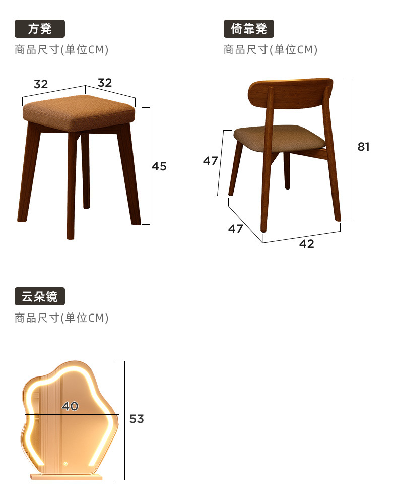 • [원목 생태보드] 100cm 테이블 + 100cm 6단 서랍장 + 구름거울 + 원목 사각스툴